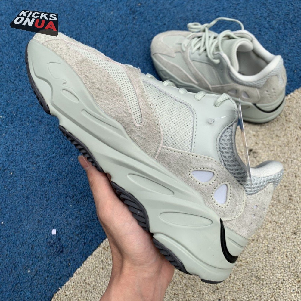 The Yeezy Boost 700 "Salt" follows a design trail originally blazed by the Yeezy 500 in November 2018. Like its predecessor, the lifestyle silhouette features a monochromatic light grey finish on a mesh base with tonal overlays in suede and leather. A sculpted midsole in matching grey, concealing full-length Boost cushioning within, features a subtle black accent, matched by the rubber outsole underfoot.