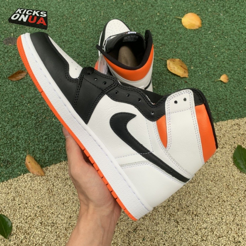 The Air Jordan 1 Retro High OG "Electro Orange" showcases a familiar palette that recalls the coveted "Shattered Backboard" colorway from 2015. The upper is crated from white leather, with contrasting black hits on the eyestay, Swoosh and forefoot overlay. A vibrant orange finish is applied to the padded collar and rubber outsole, featuring a grippy traction pattern carried over from the original 1985 release. An additional pop of orange makes its way to the Nike Air tag atop the nylon tongue.