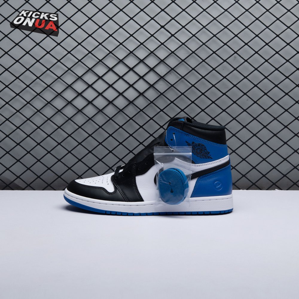 The Nike Fragment Design x Air Jordan 1 Retro High OG is the first collaboration between Hiroshi Fujiwara's Fragment Design and Brand Jordan. One of the most coveted Air Jordan 1 colorways ever created, the design combines the OG black-toe color blocking with royal blue accents. Released in limited quantities in December 2014, the design also includes Nike Air branding on the tongue and a Fragment Design logo at the heel.