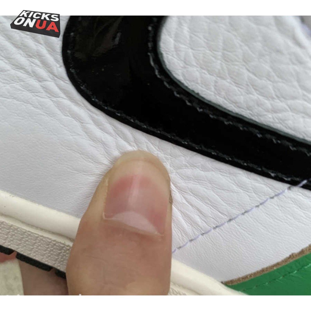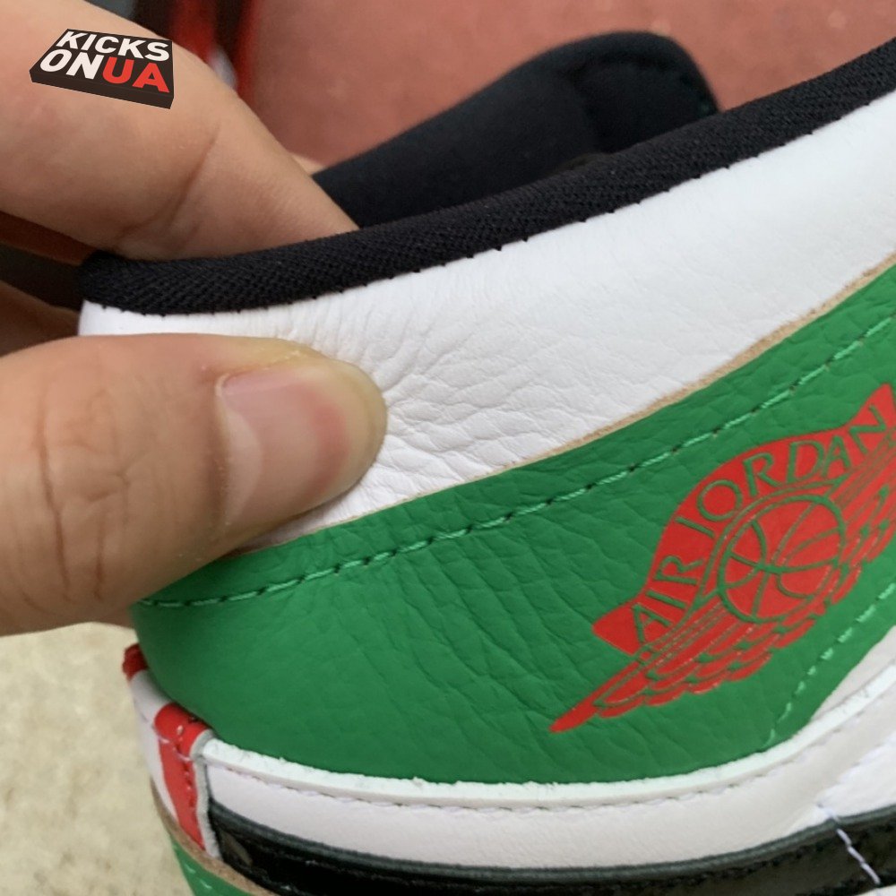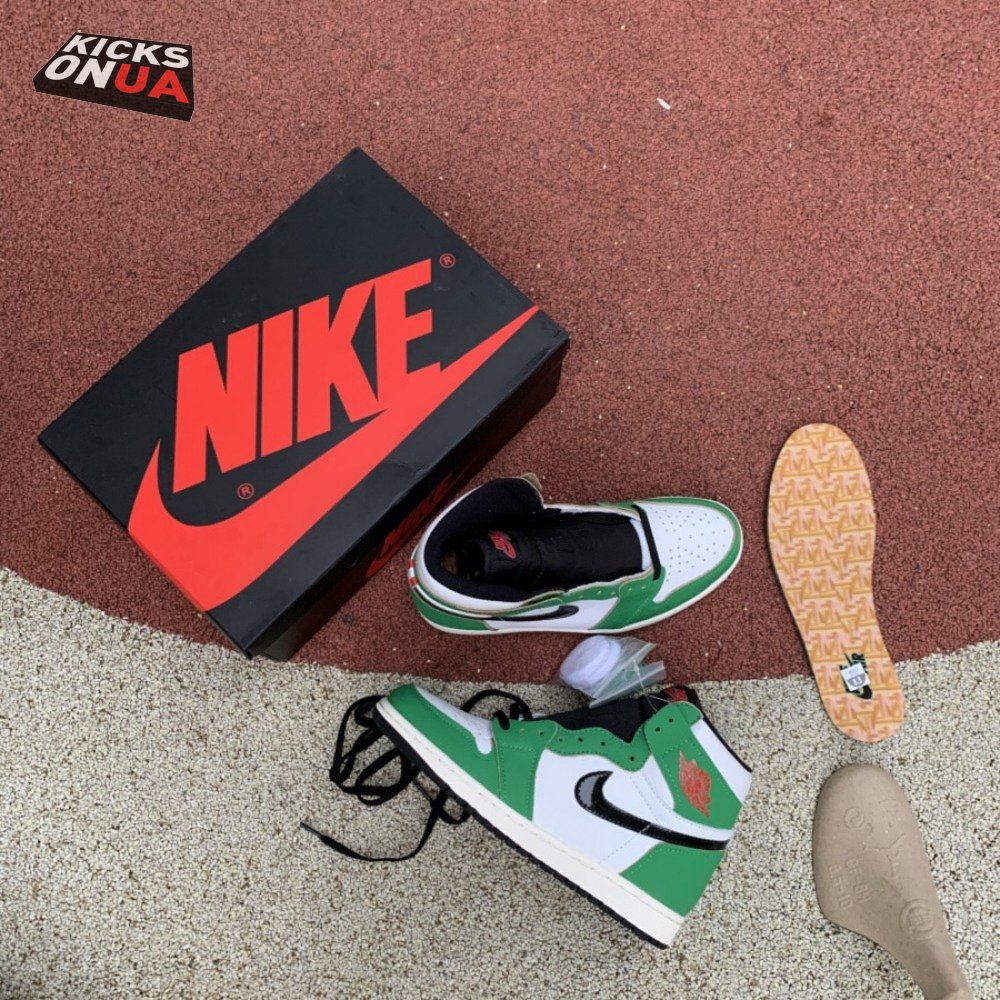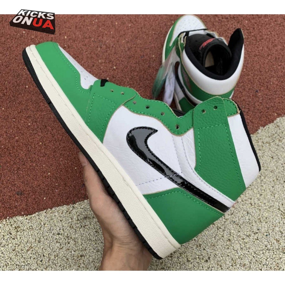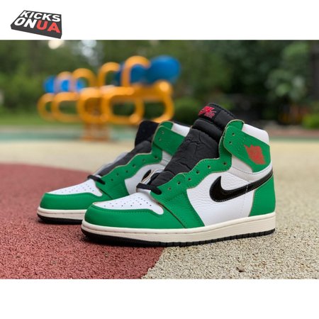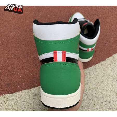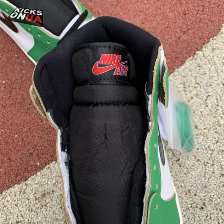 The women"s Air Jordan 1 Retro High OG "Lucky Green" draws inspiration from an early career highlight in the Michael Jordan canon " namely, His Airness" 63-point game at the old Boston Garden during the 1986 playoffs. The high-top utilizes classic two-tone color blocking, featuring a white leather base and contrasting green leather overlays with raw edges for a subtly unfinished aesthetic. Branding elements include a black Swoosh, Nike Air tongue tag and a red Wings logo on the lateral collar flap.
