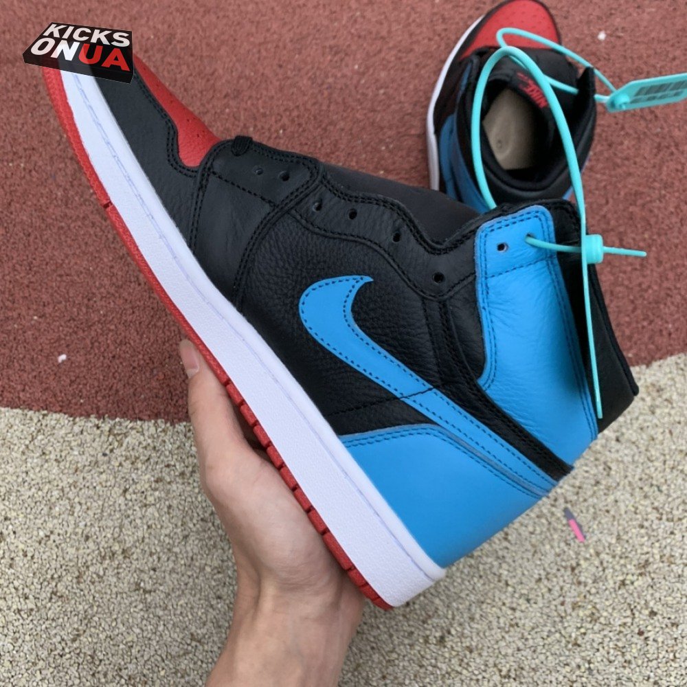 The Wmns Air Jordan 1 High OG 'UNC To Chicago' dips Michael Jordan's iconic first signature sneaker in a mix of two popular colorways. It features hues from MJ's college and first pro team, the University of North Carolina Tar Heels and the Chicago Bulls. Dressed in black, Dark Powder Blue and Gym Red, the women's shoe comes with a premium upper and displays both Jordan and Nike branding. Finishing the look are toe box perforations and a rubber outsole with a pivot point tread pattern.