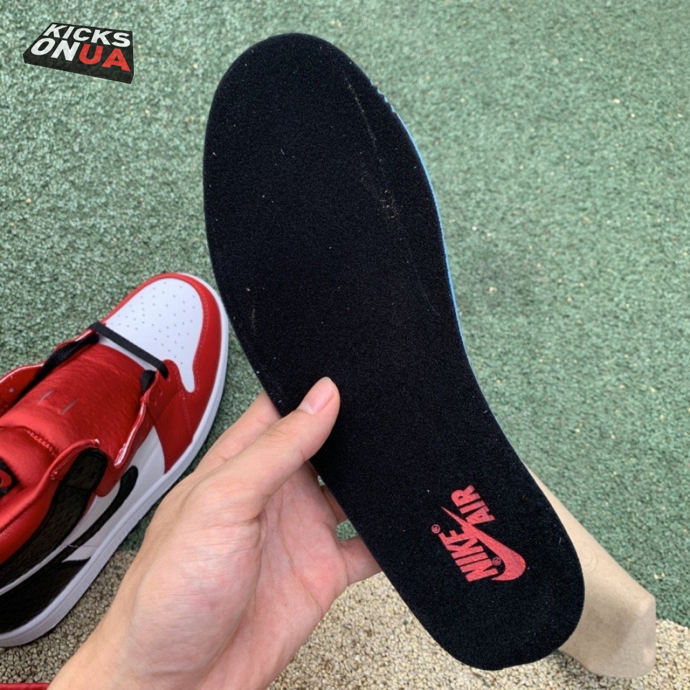 The women"s Air Jordan 1 Retro High OG "Satin Red" is the sequel to the women"s "Satin Black Toe" release from 2019. This pair features the same Chicago-based palette as its predecessor but the color blocking is flipped, so that the forefoot is finished in red and the heel and collar overlays are rendered in basic black. The latter two components " along with the Swoosh " are embellished with a snakeskin texture, while satin is utilized on the tongue and interior lining.