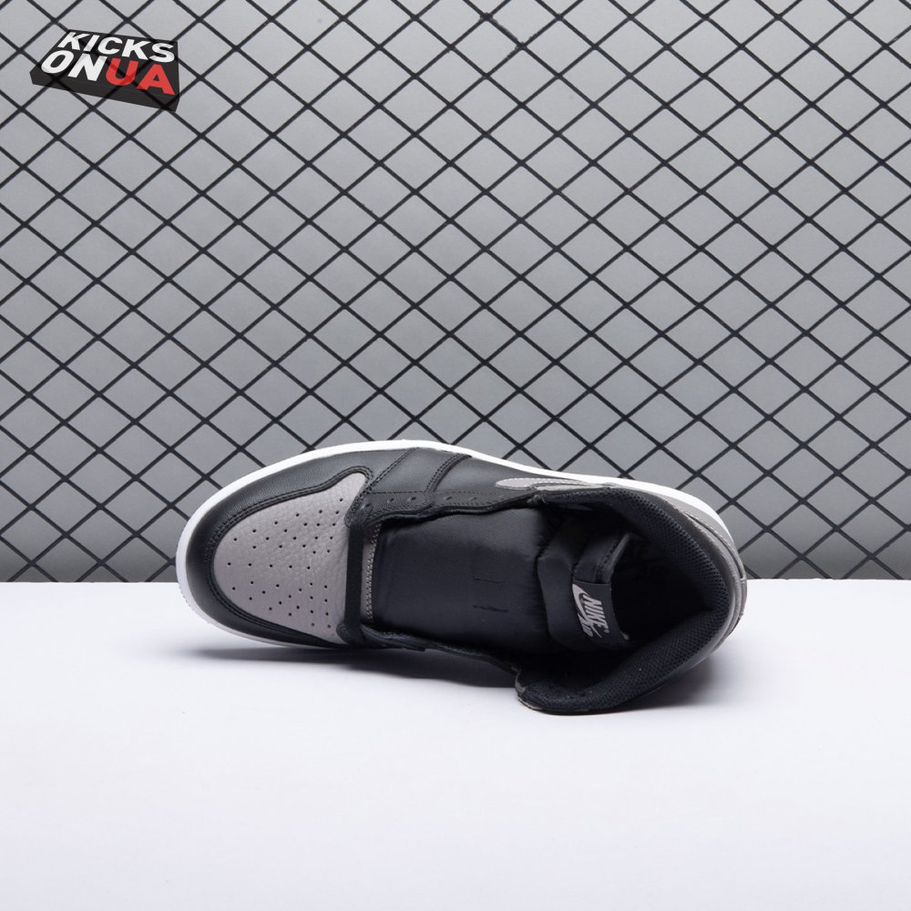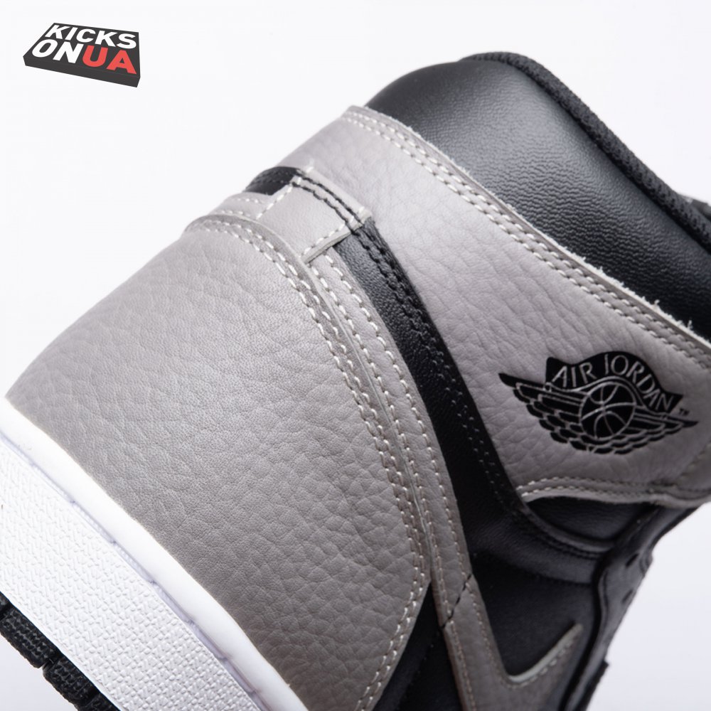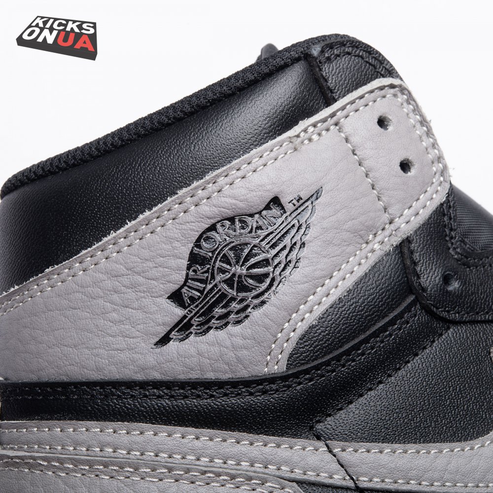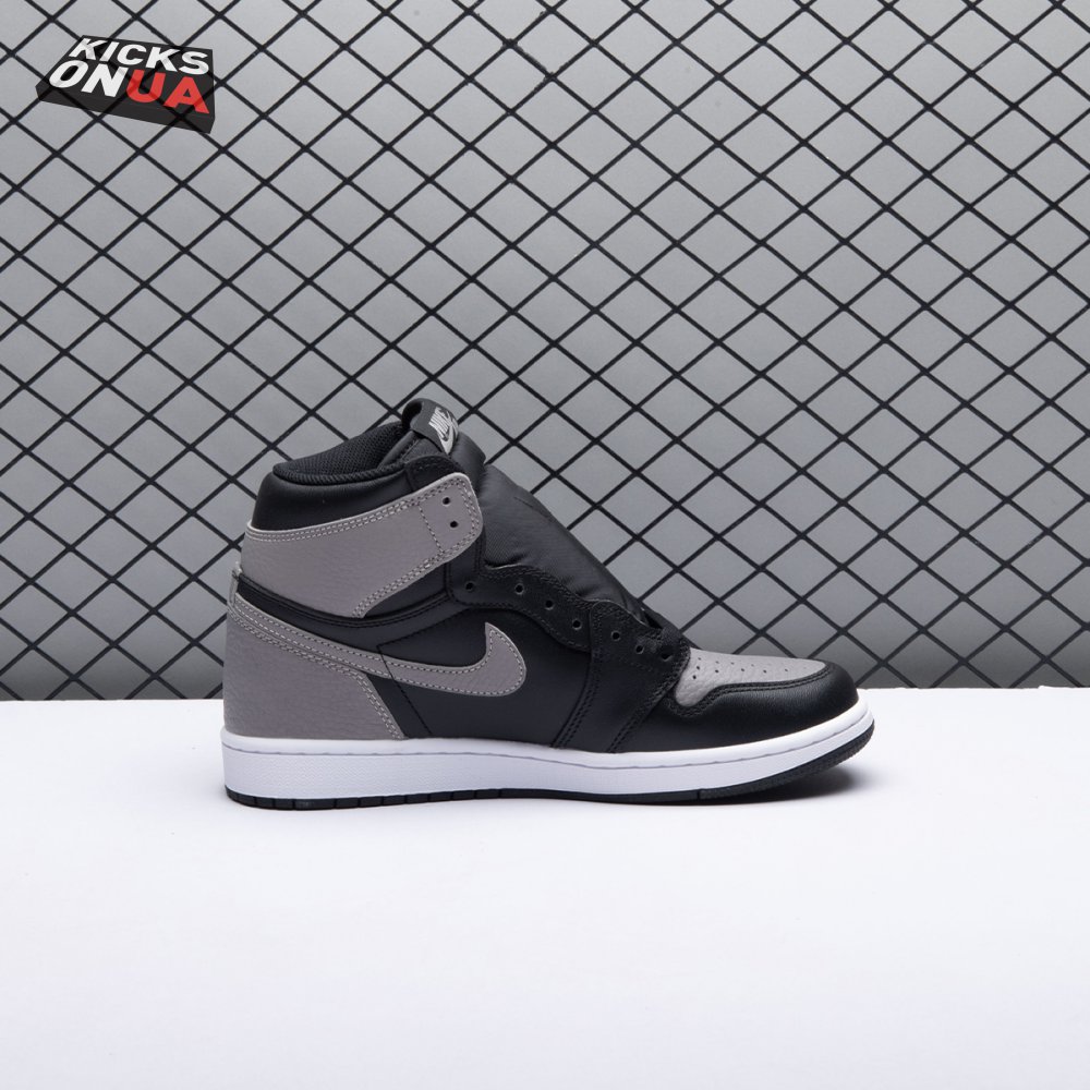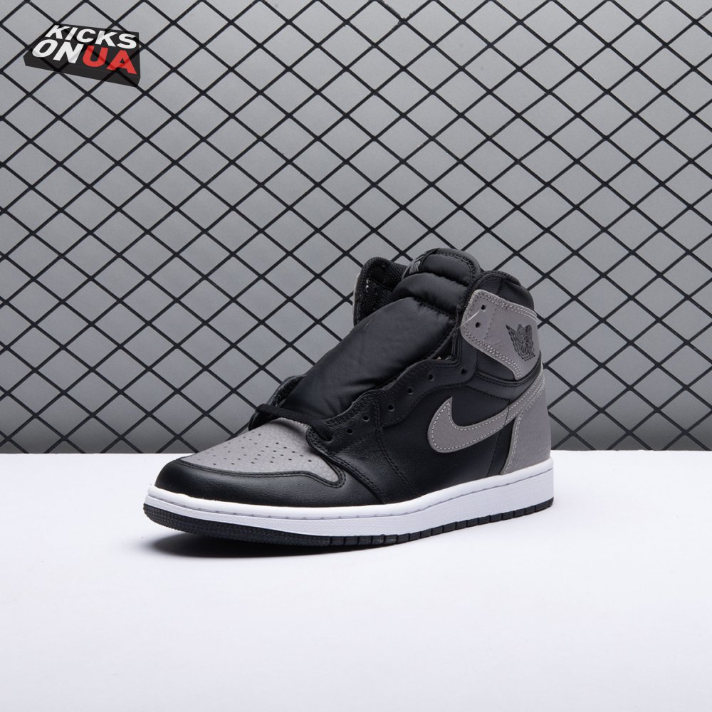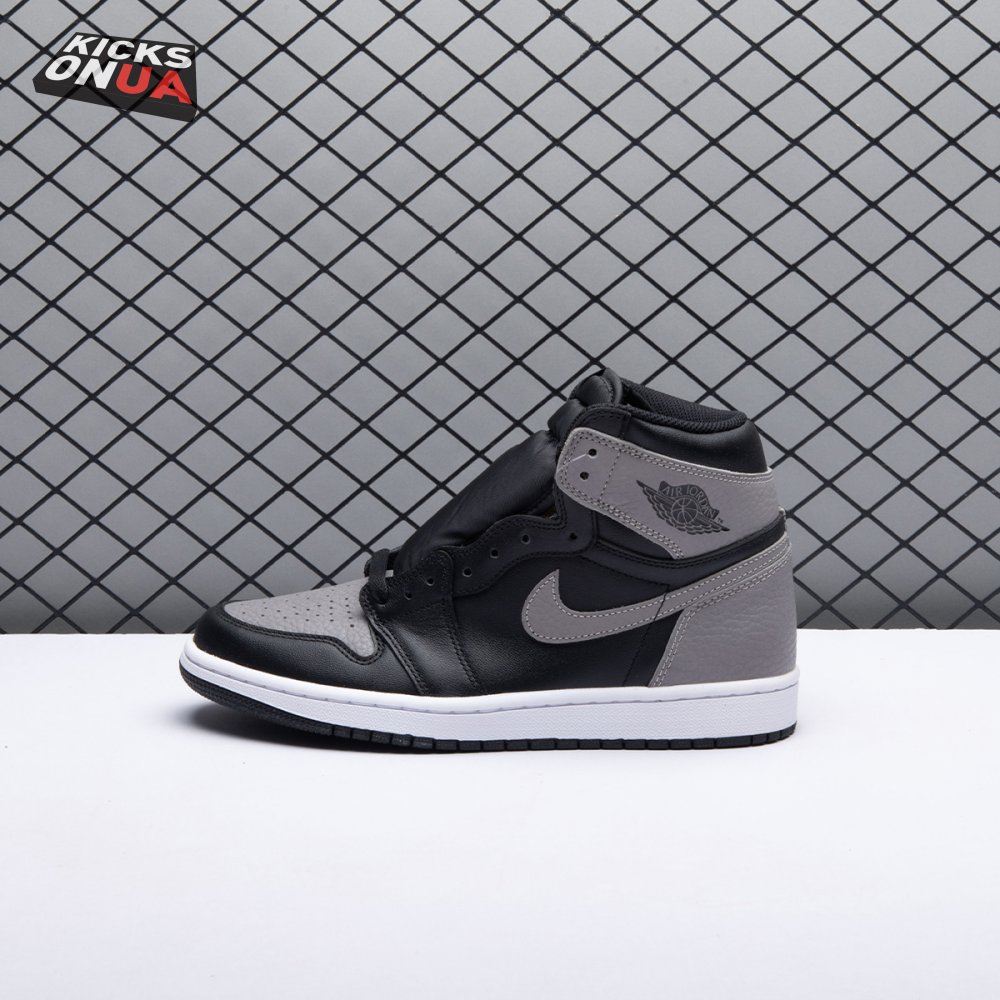 This Nike Air Jordan 1 Retro High OG 'Shadow' 2018 is a retro re-release of an original 1985 colorway. The shoe features a black and medium grey leather upper with a white midsole and black outsole. It also features OG Nike Air branding on the tongue and the Wings logo on the ankle collar. It was last retroed in 2013, and a low-top version dropped in 2015.