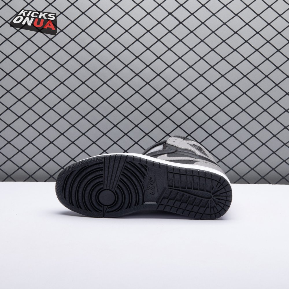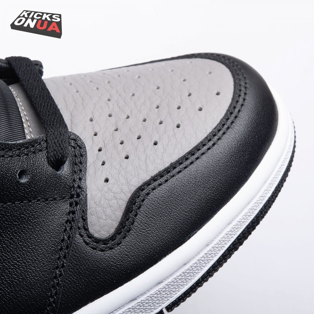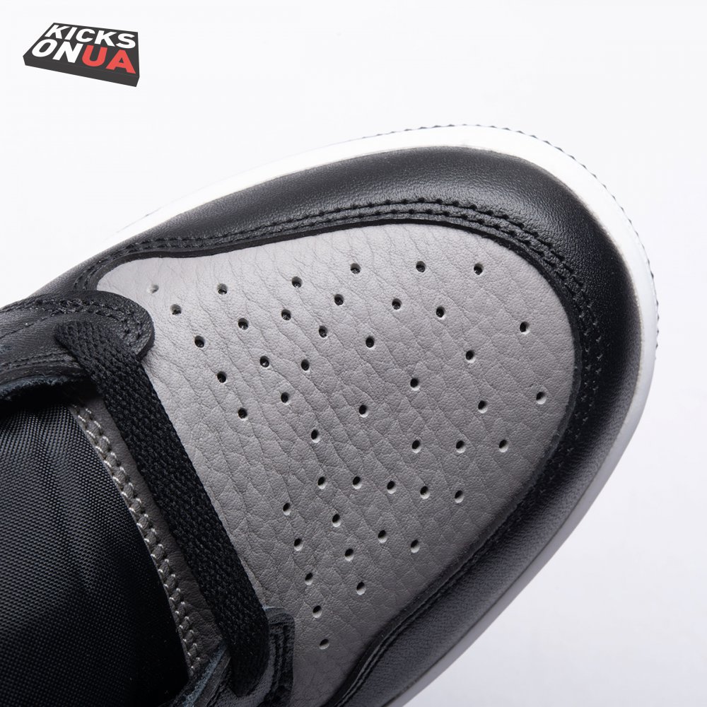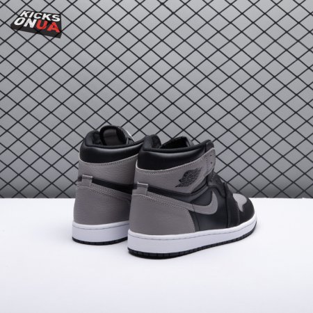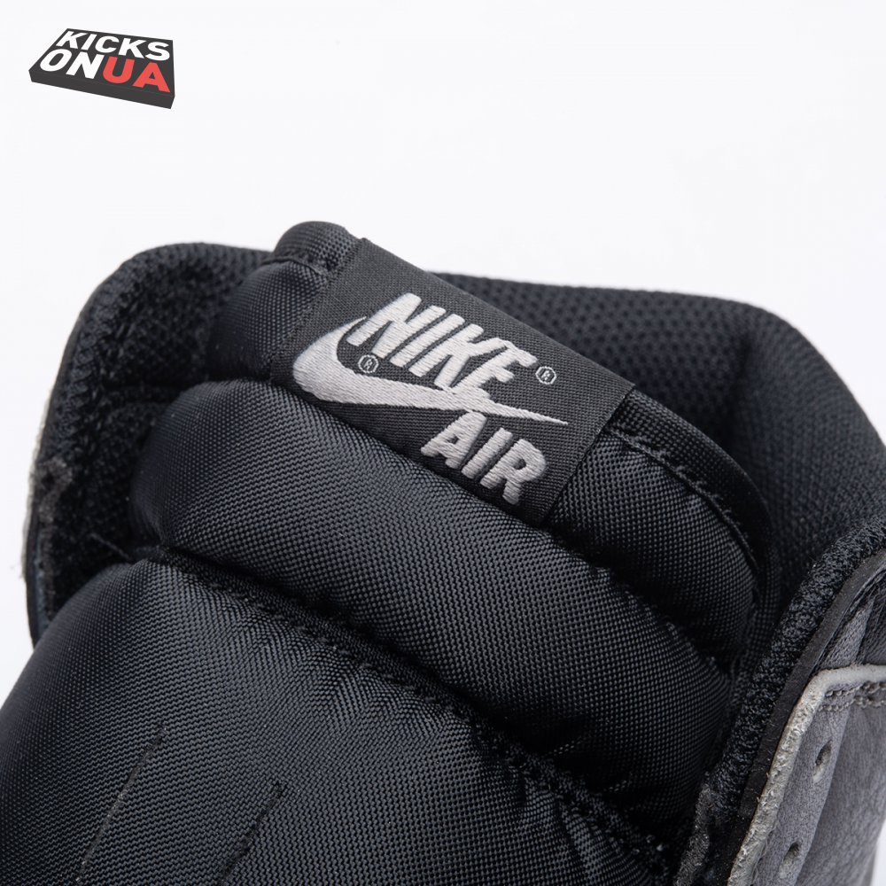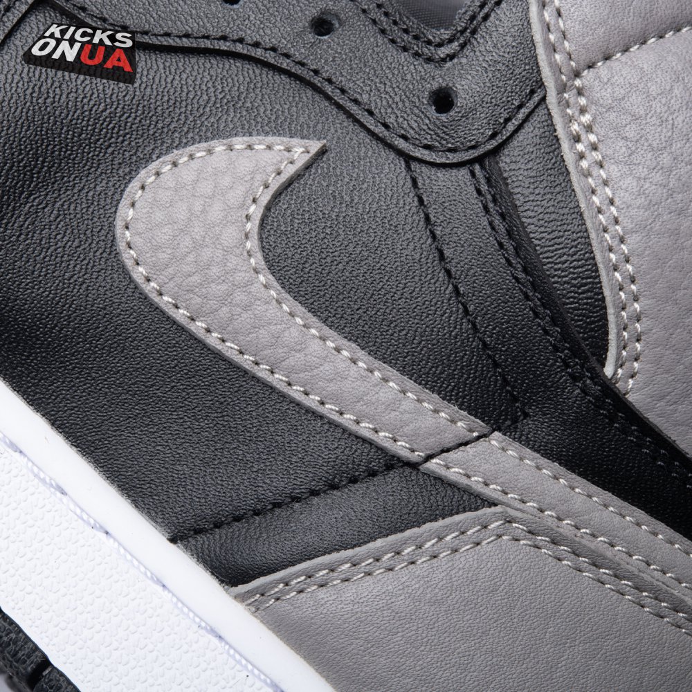 This Nike Air Jordan 1 Retro High OG 'Shadow' 2018 is a retro re-release of an original 1985 colorway. The shoe features a black and medium grey leather upper with a white midsole and black outsole. It also features OG Nike Air branding on the tongue and the Wings logo on the ankle collar. It was last retroed in 2013, and a low-top version dropped in 2015.