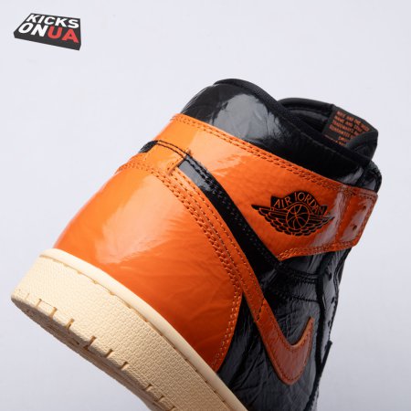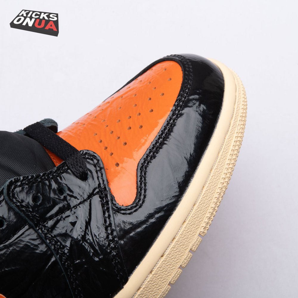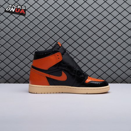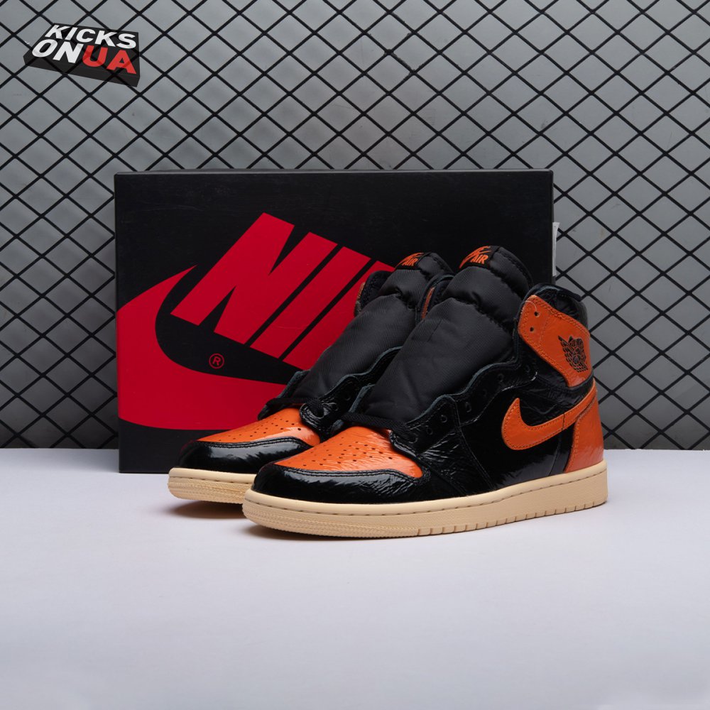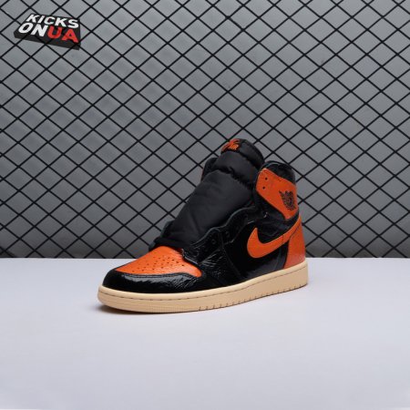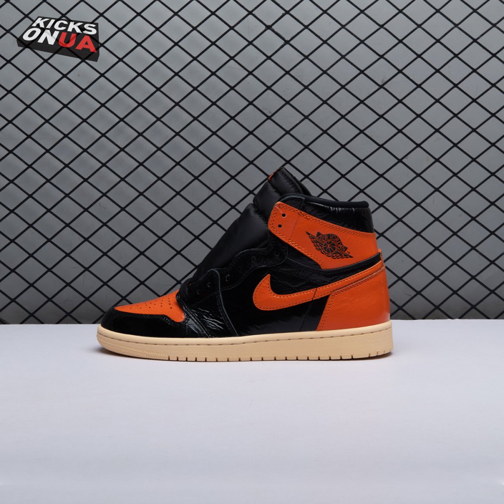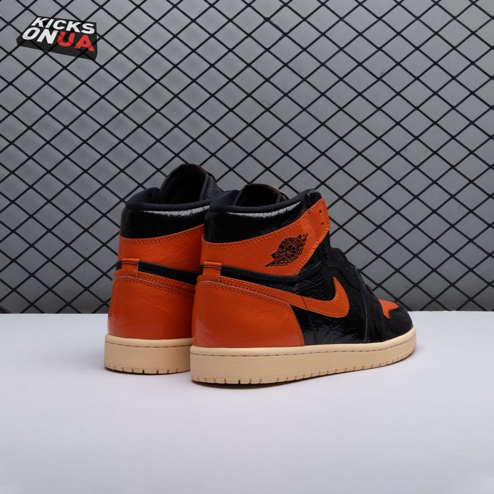The Air Jordan 1 Retro High OG 'Shattered Backboard 3.0' revisits a coveted colorway inspired by a Michael Jordan backboard-breaking dunk that took place during a 1985 Nike exhibition game. The shoe's colorway of black, Pale Vanilla and Starfish matches the colors of the jersey MJ sported that day. Released in October 2019, this third edition of the sneaker features a crinkled, glossy patent leather upper that alludes to the hoop's broken glass, a fitting tribute to an early iconic moment.