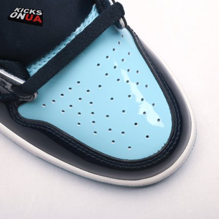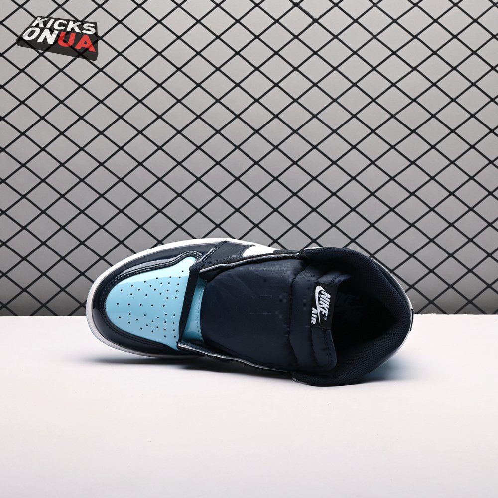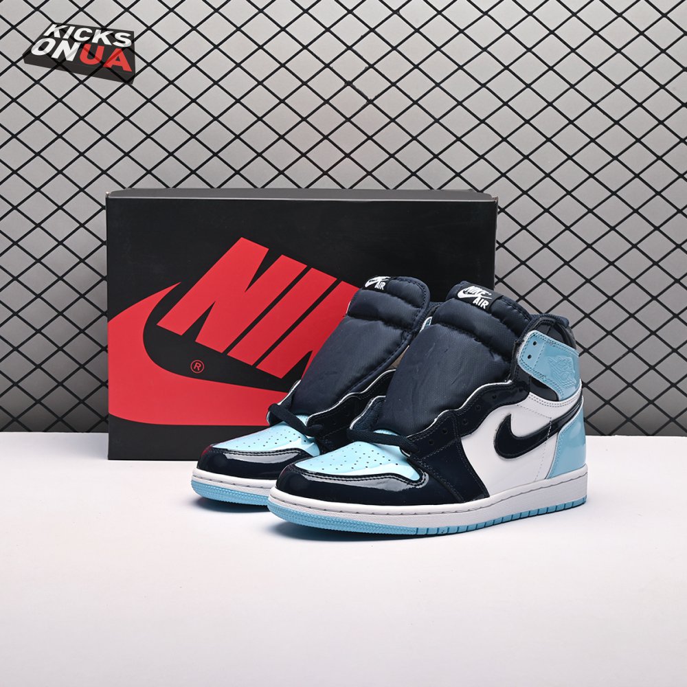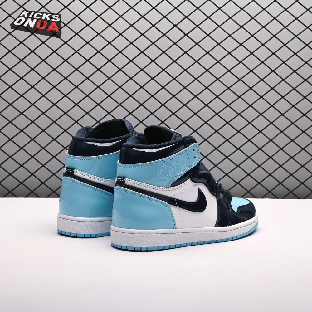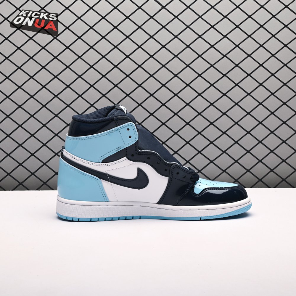 The Women's Air Jordan 1 Retro High OG 'Blue Chill' features a patent leather upper in Blue Chill and white with Obsidian overlays throughout. Released February 2019, the colors are inspired from Michael Jordan's roots in North Carolina as well as the NBA All-Star host city Charlotte.