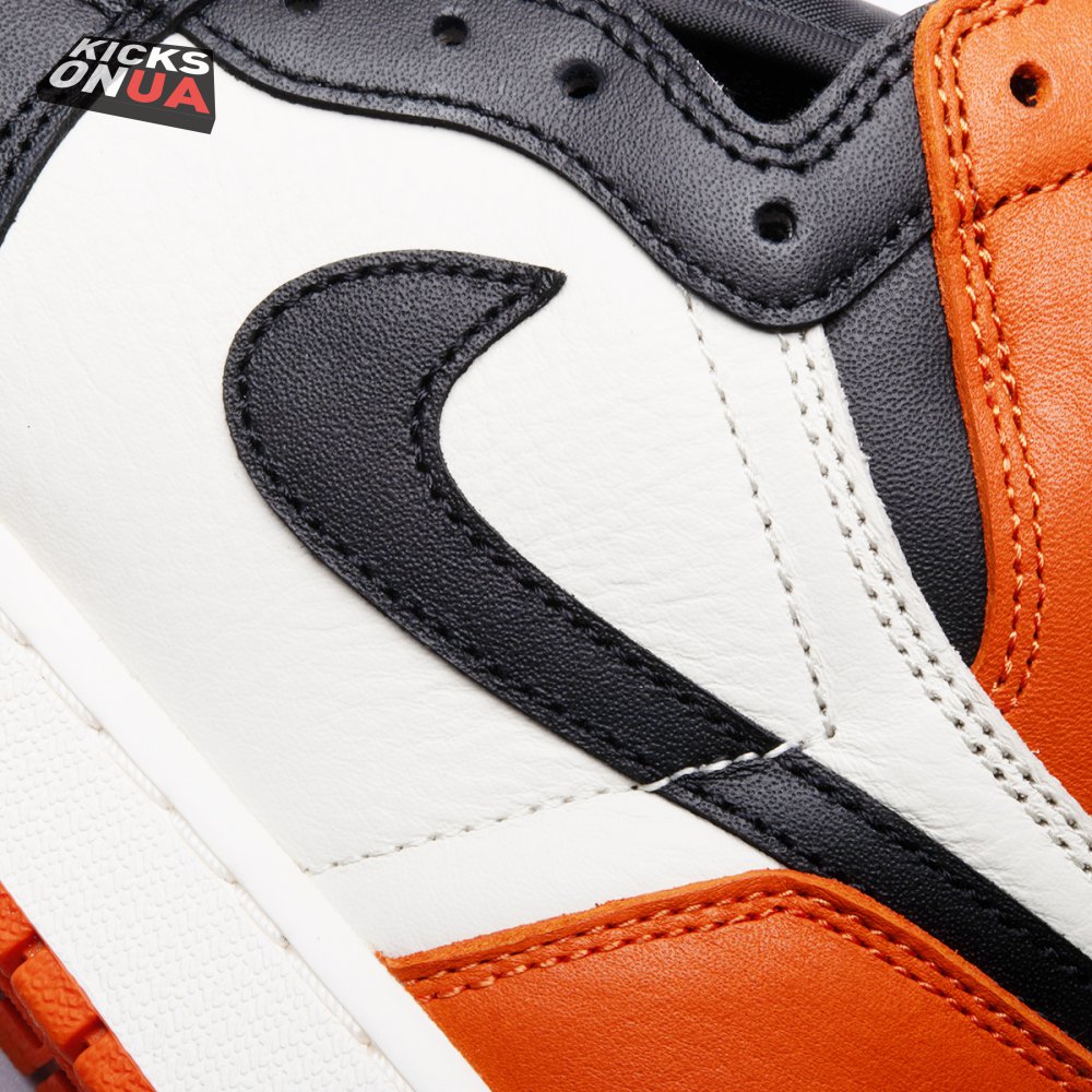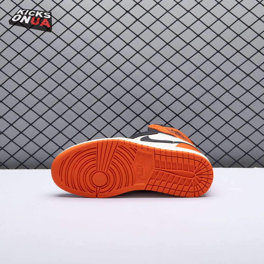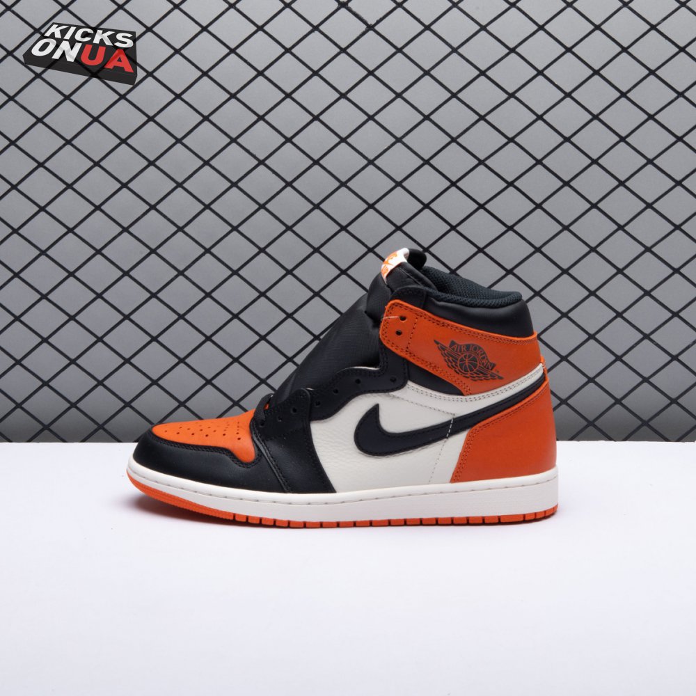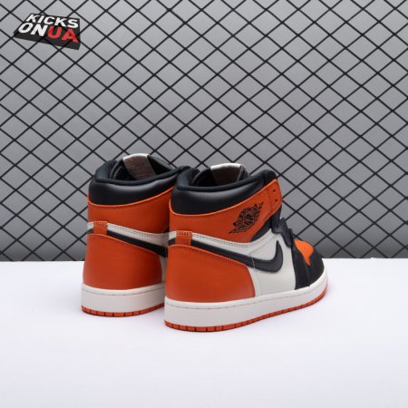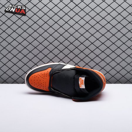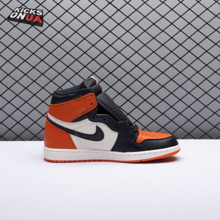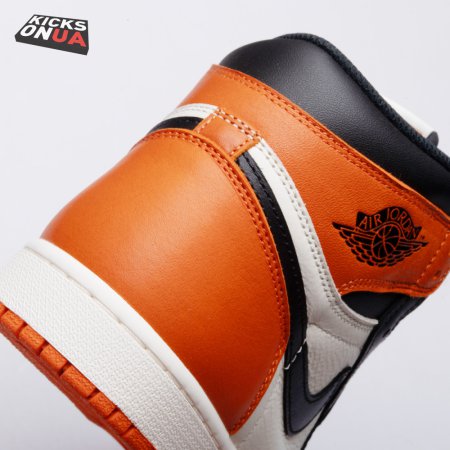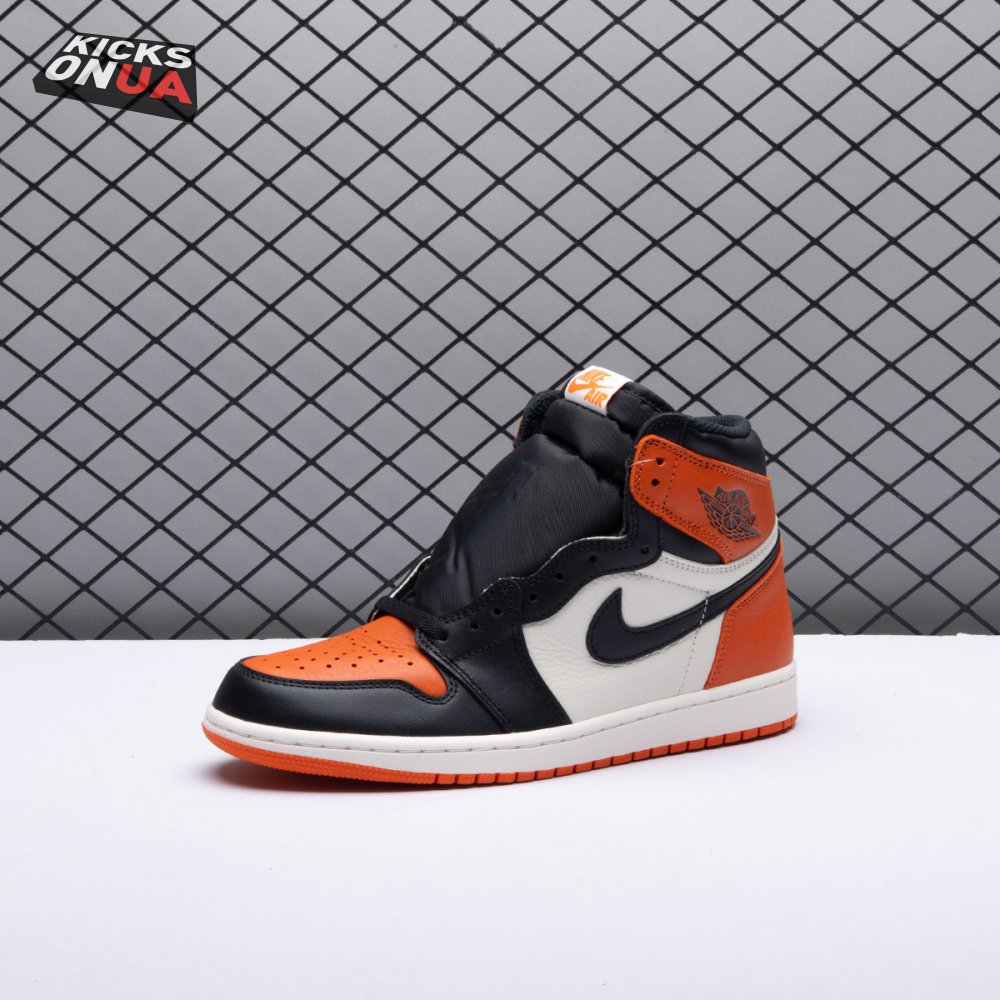 In 1985 on a Nike Europe tour, Michael Jordan shattered a backboard when throwing down a monstrous dunk while wearing an orange, black, and white uniform. Commemorating the moment and uniform, this 2015 Air Jordan 1 'Shattered Backboard' (aka 'Shattered Backboard' 1.0) sneaker was released. Shortly after in the Fall of 2016, an Air Jordan 1 'Shattered Backboard Away' (aka 'Reverse' and 'Shattered Backboard 2.0') was released. The sneaker keeps the black laces and Nike branding, but swaps out the orange toe box and black around the toe and tongue for white.
