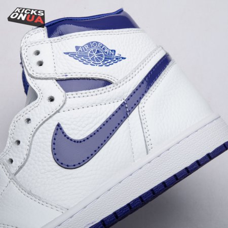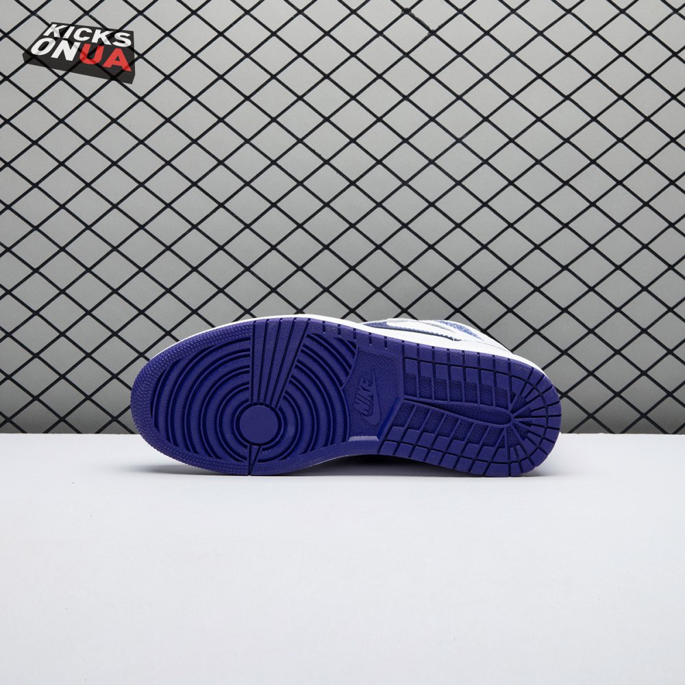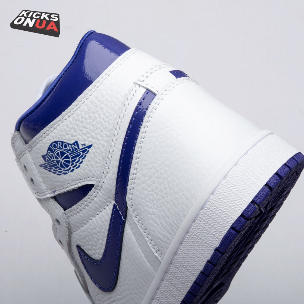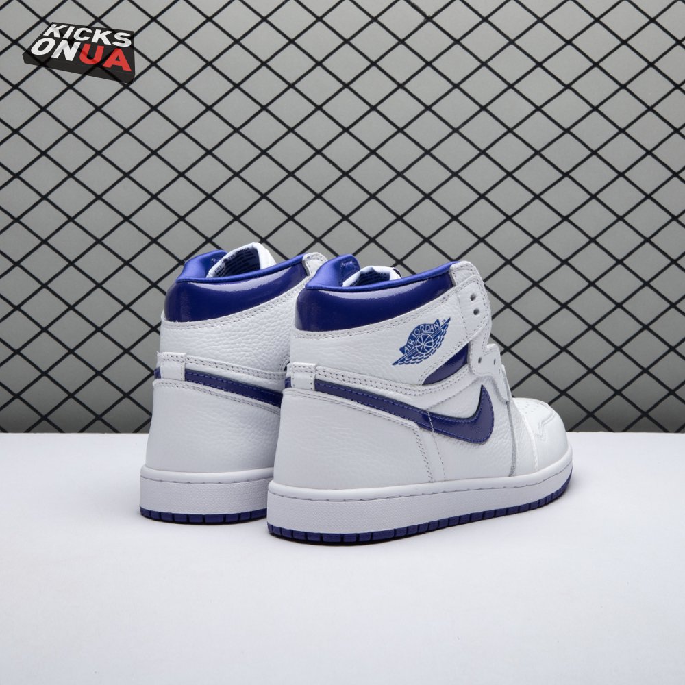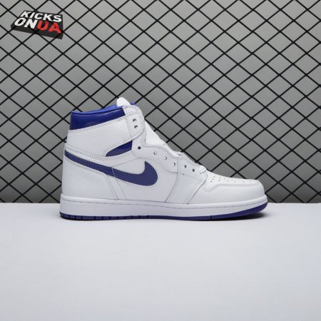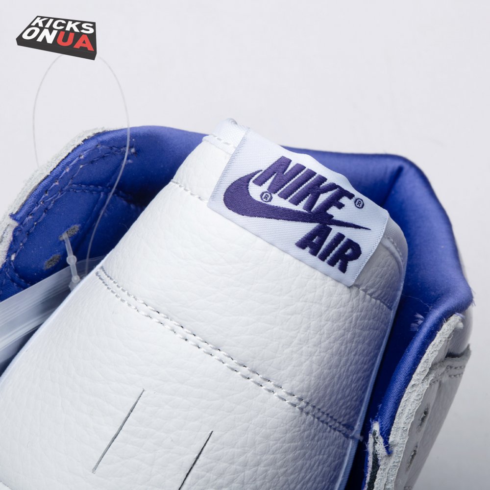 The women's Air Jordan 1 High OG 'Court Purple' takes inspiration from 1986's OG 'Metallic Purple' Air Jordan 1. The high-top is defined by a white leather upper set against contrasting violet hits on the glossy Swoosh and collar. The same color appears on the Nike Air tongue tag and Jordan Wings logo on the lateral collar flap, as well as on the satin collar lining, a detail that gives the shoe a luxurious touch. Lightweight cushioning arrives via a two-tone rubber cupsole featuring encapsulated Nike Air in the heel.