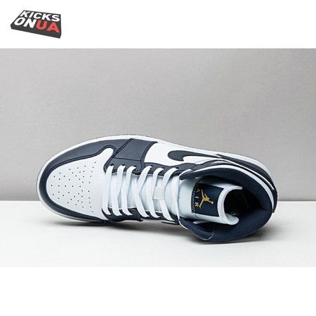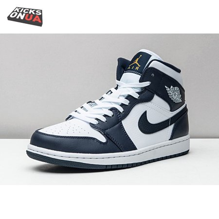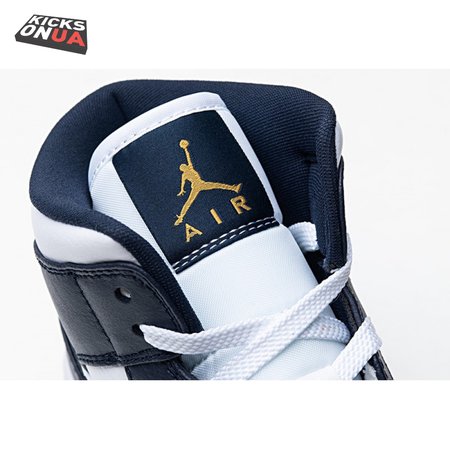 Jordan 1 Mid White Metallic Gold Obsidian 554724-174 Unisex