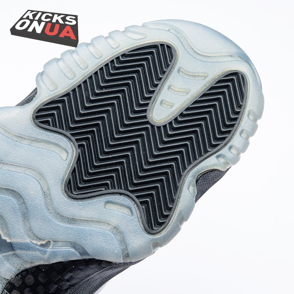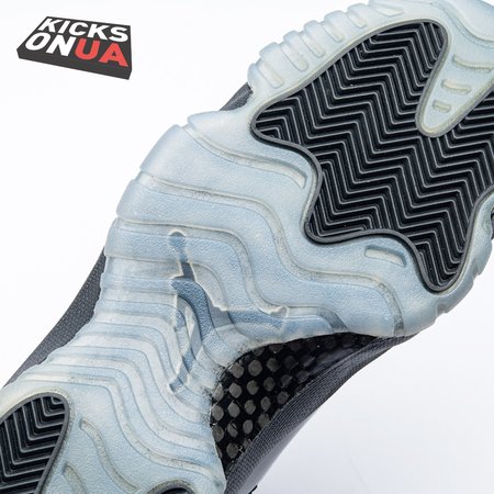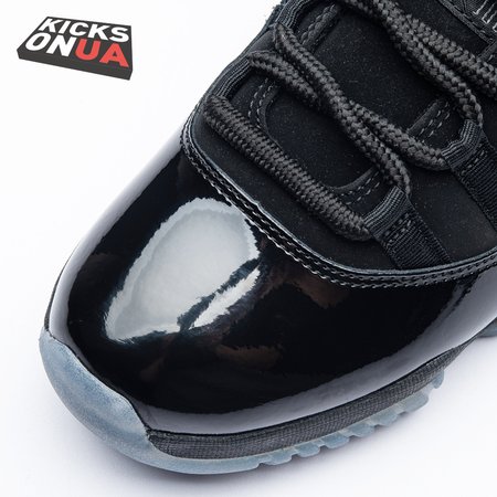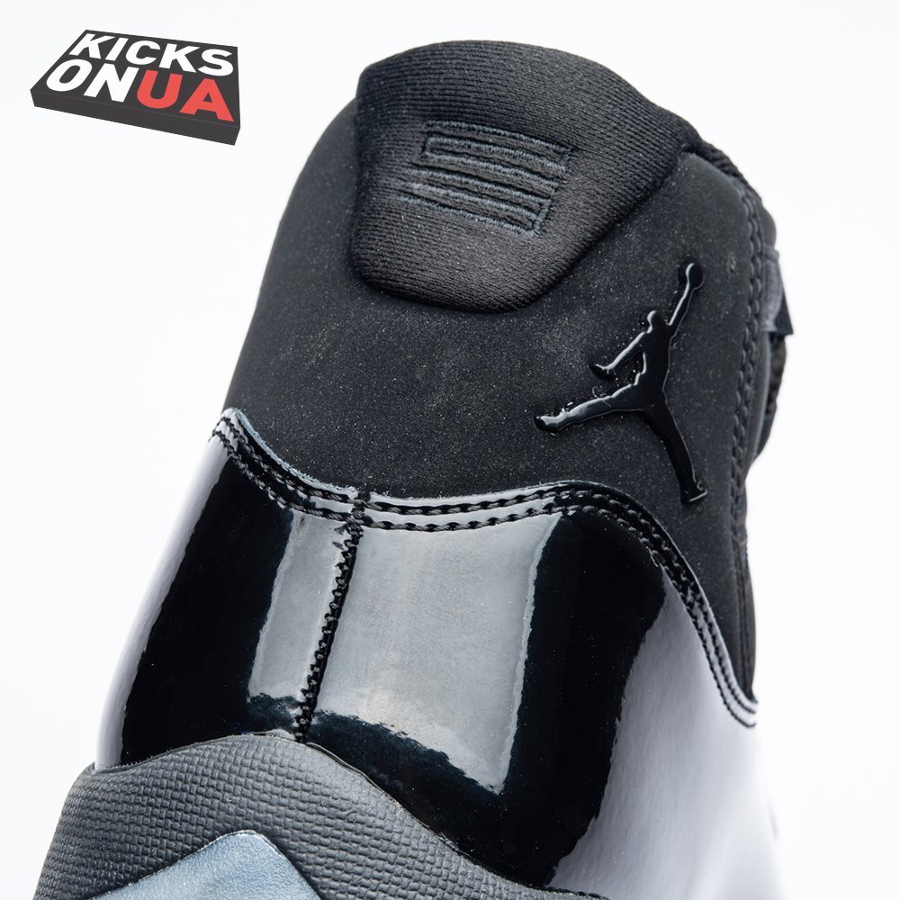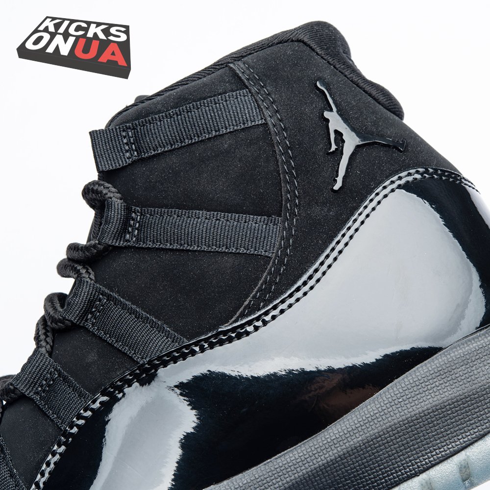 First teased in 2011 as a sample from the Air Jordan Blackout Collection, the Air Jordan 11 Retro 'Cap and Gown' was finally made available to the public in 2018. The name refers its formal look, designed to be worn for occasions such as graduation ceremonies"its laces are even inspired by graduation cords. The all-black model features a patent leather and premium nubuck upper atop an icy blue outsole.
