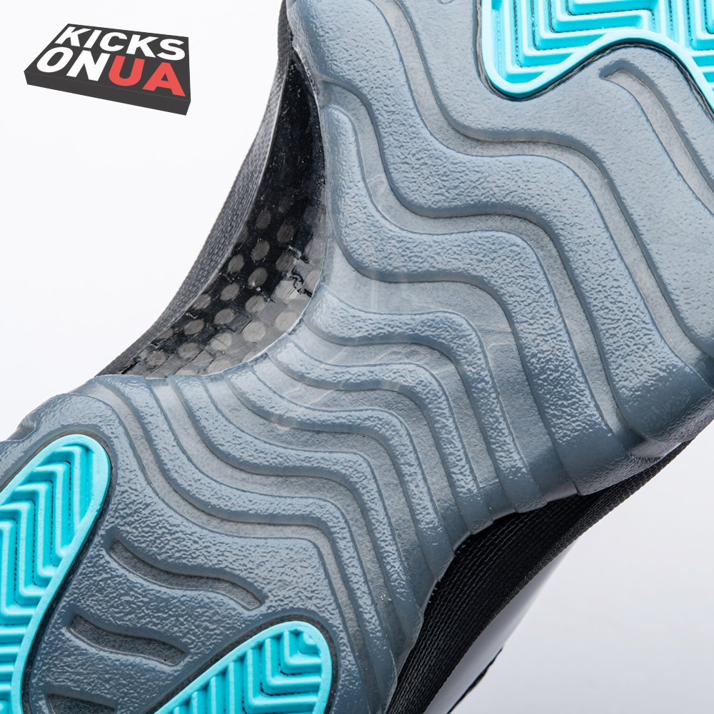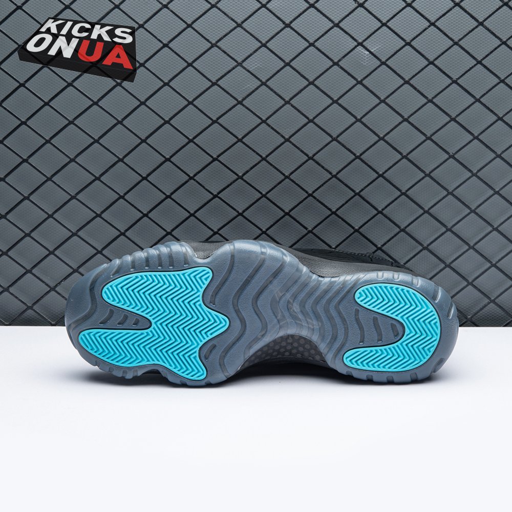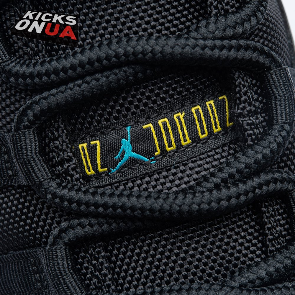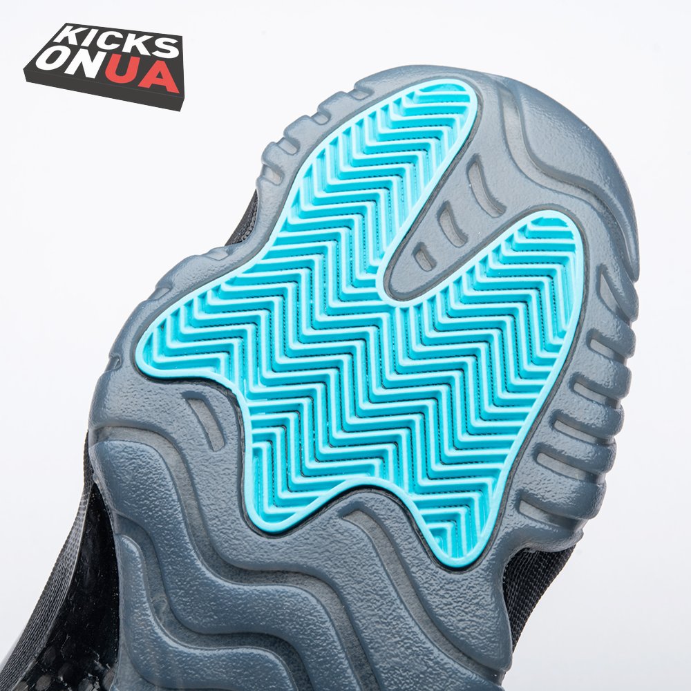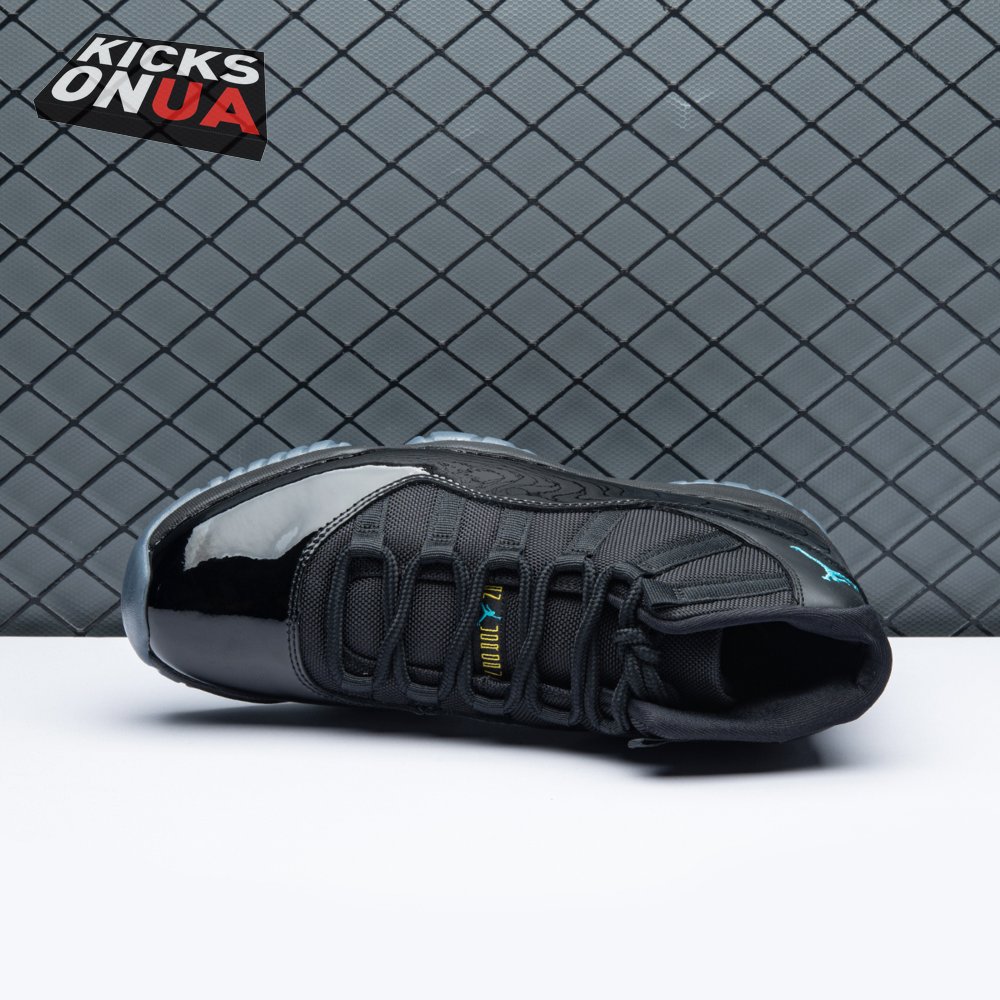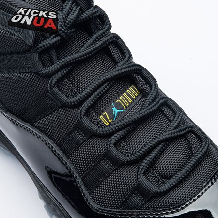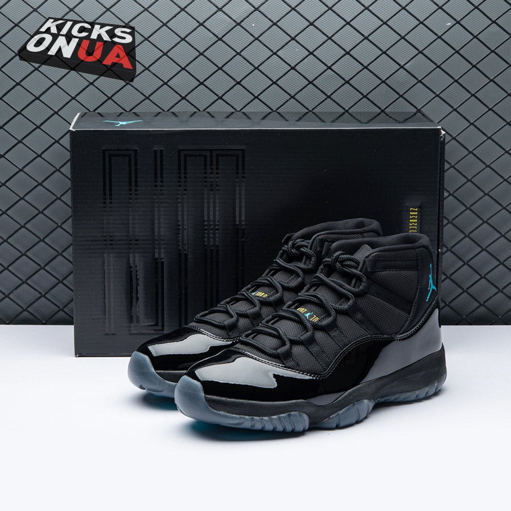 The Air Jordan 11 Retro "Gamma Blue" released in 2013 as Jordan Brand"s requisite AJ11 holiday release. The non-OG colorway features a sleek black finish throughout the upper, constructed from a traditional blend of ballistic mesh and shiny patent leather. Contrasting pops of color arrive via the sneaker"s branding hits, which include a turquoise Jumpman and "23" stamped in Varsity Maize on the heel tab. A cushy Phylon midsole is enhanced with a top-loaded full-length Air unit and supported by a carbon fiber spring plate. A translucent rubber outsole utilizes herringbone traction pods for superior grip.