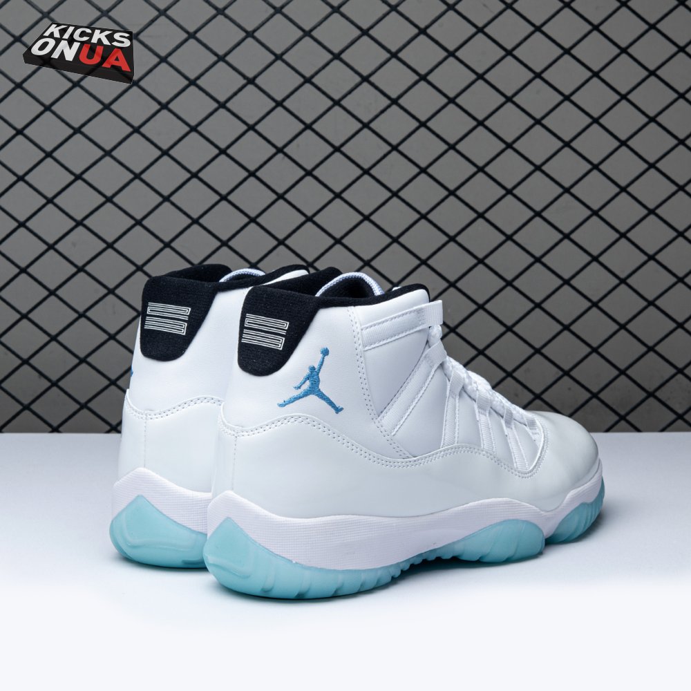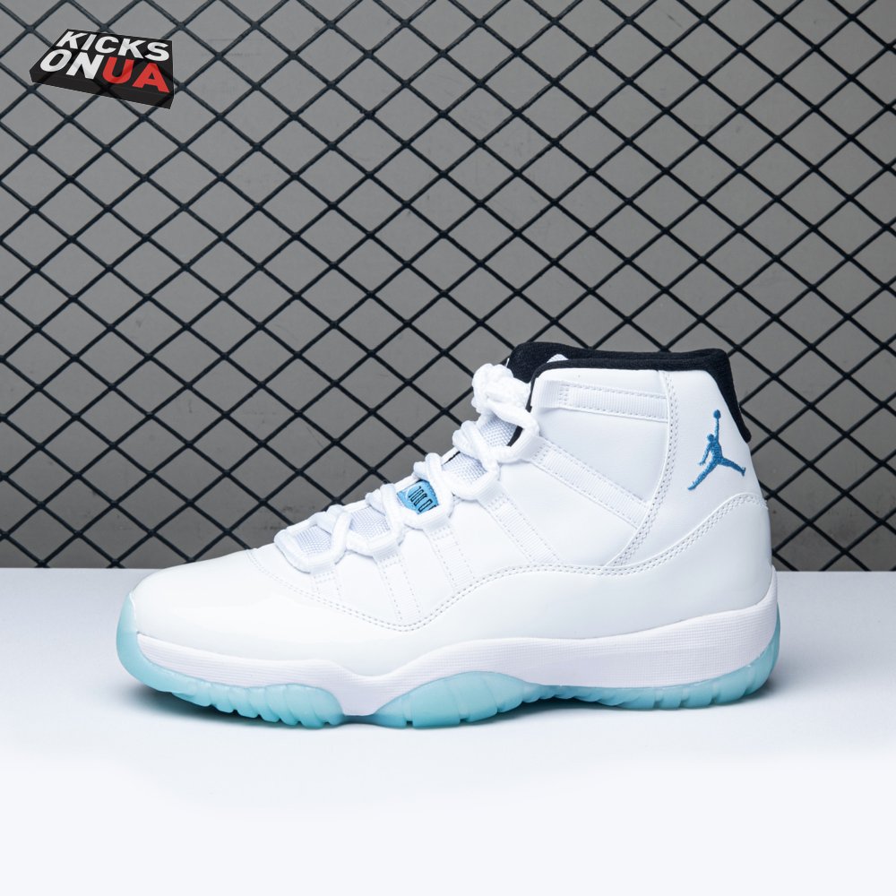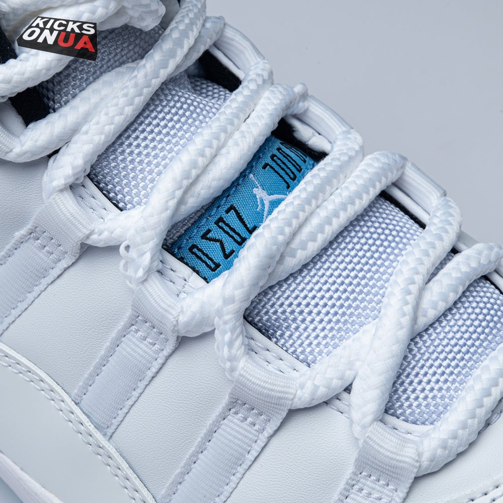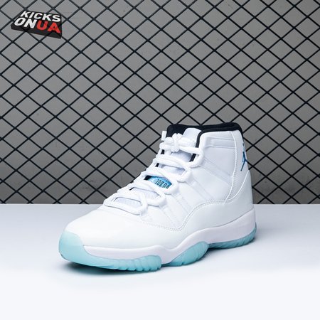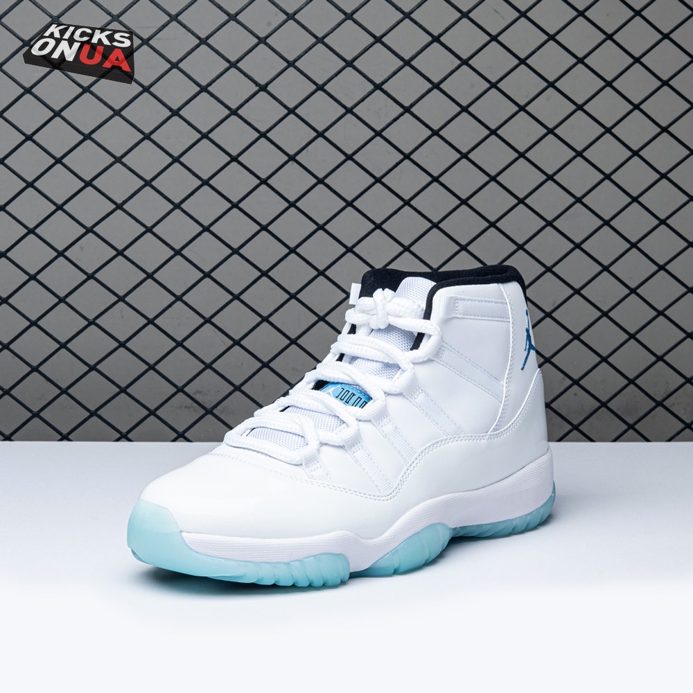 The 2014 edition of the Air Jordan 11 Retro "Legend Blue" brings back an OG colorway from 1996. Famously worn by Michael Jordan during that year"s NBA All-Star Game " his first following a short-lived retirement from the game " the mid-top features blue accents inspired by His Airness" alma mater. They stand out against an all-white leather backdrop, including the 11"s signature patent leather mudguard. A matching white Phylon midsole is fitted with a full-length Air unit and supported by an icy translucent outsole.