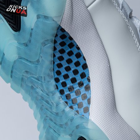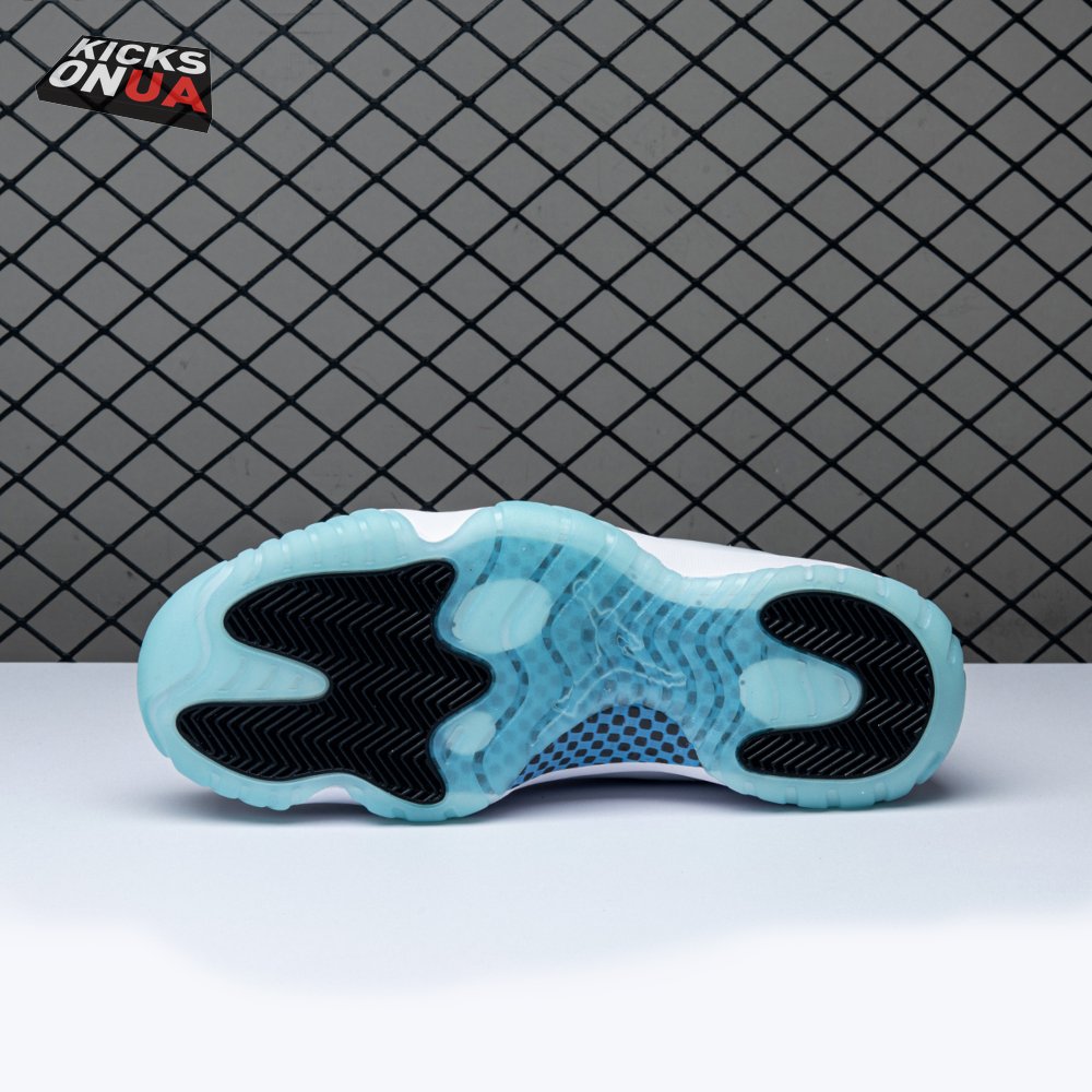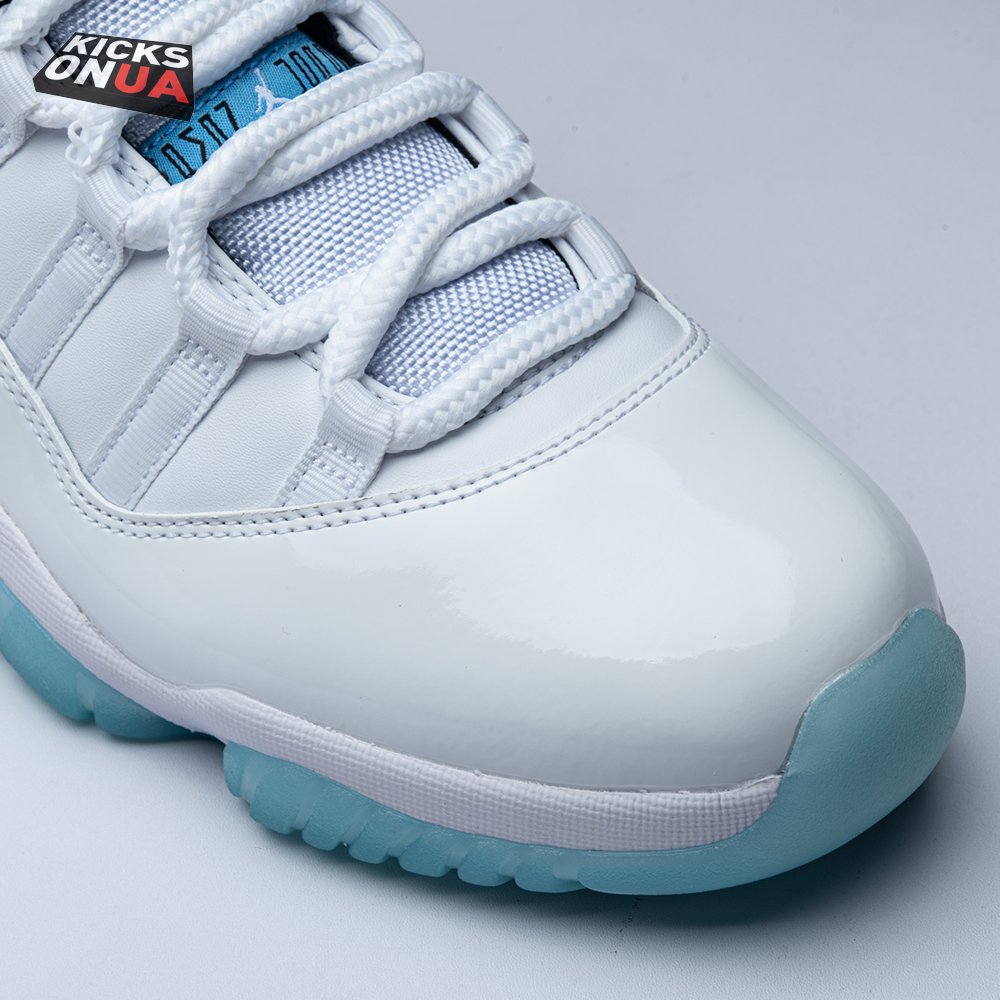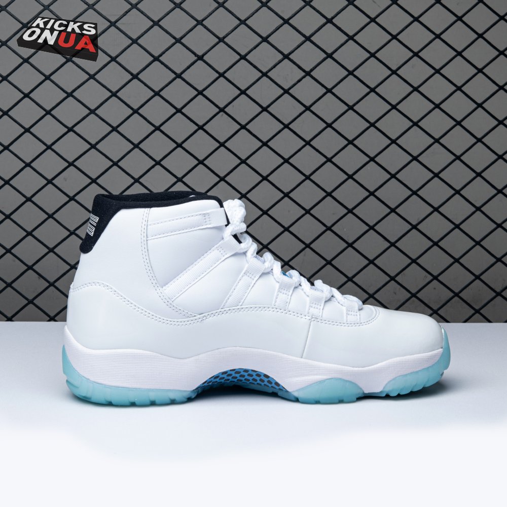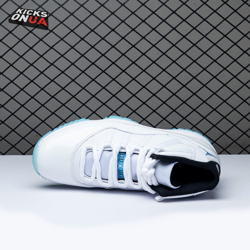 The 2014 edition of the Air Jordan 11 Retro "Legend Blue" brings back an OG colorway from 1996. Famously worn by Michael Jordan during that year"s NBA All-Star Game " his first following a short-lived retirement from the game " the mid-top features blue accents inspired by His Airness" alma mater. They stand out against an all-white leather backdrop, including the 11"s signature patent leather mudguard. A matching white Phylon midsole is fitted with a full-length Air unit and supported by an icy translucent outsole.
