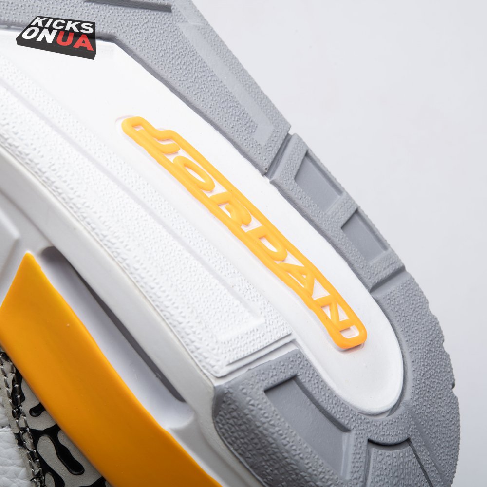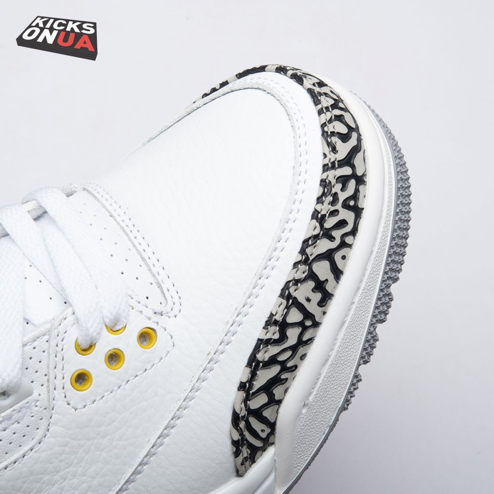 The women"s Air Jordan 3 Retro "Laser Orange" features an OG-inspired look, highlighted by a single pop of color on an otherwise neutral design. The AJ3"s signature elephant print overlays reinforce a white tumbled leather upper, marked with embossed Jumpman branding on the molded heel panel. A second Jumpman icon adorns the tongue in Laser Orange embroidery, matching the sneaker"s midsole wedge and lower eyelets.