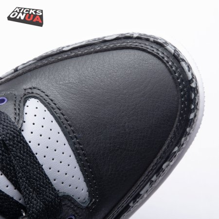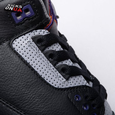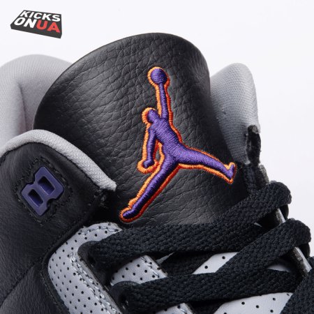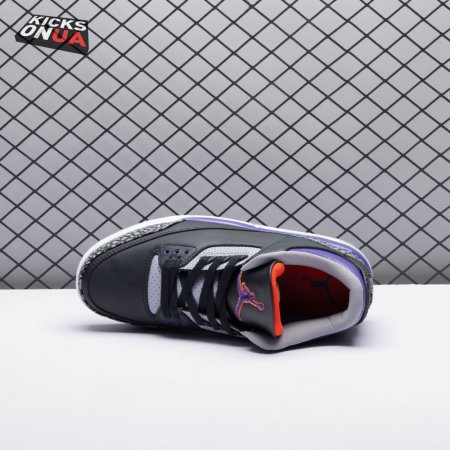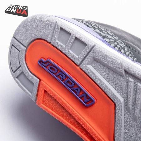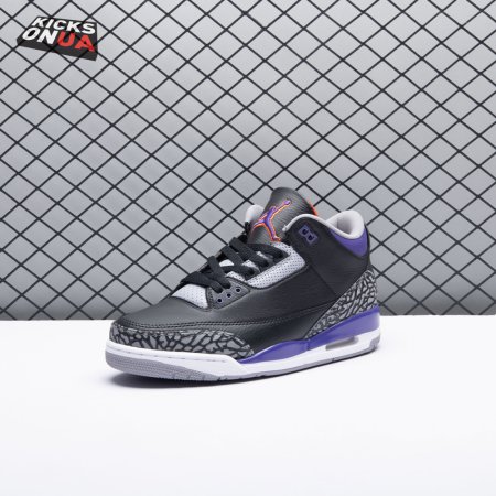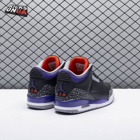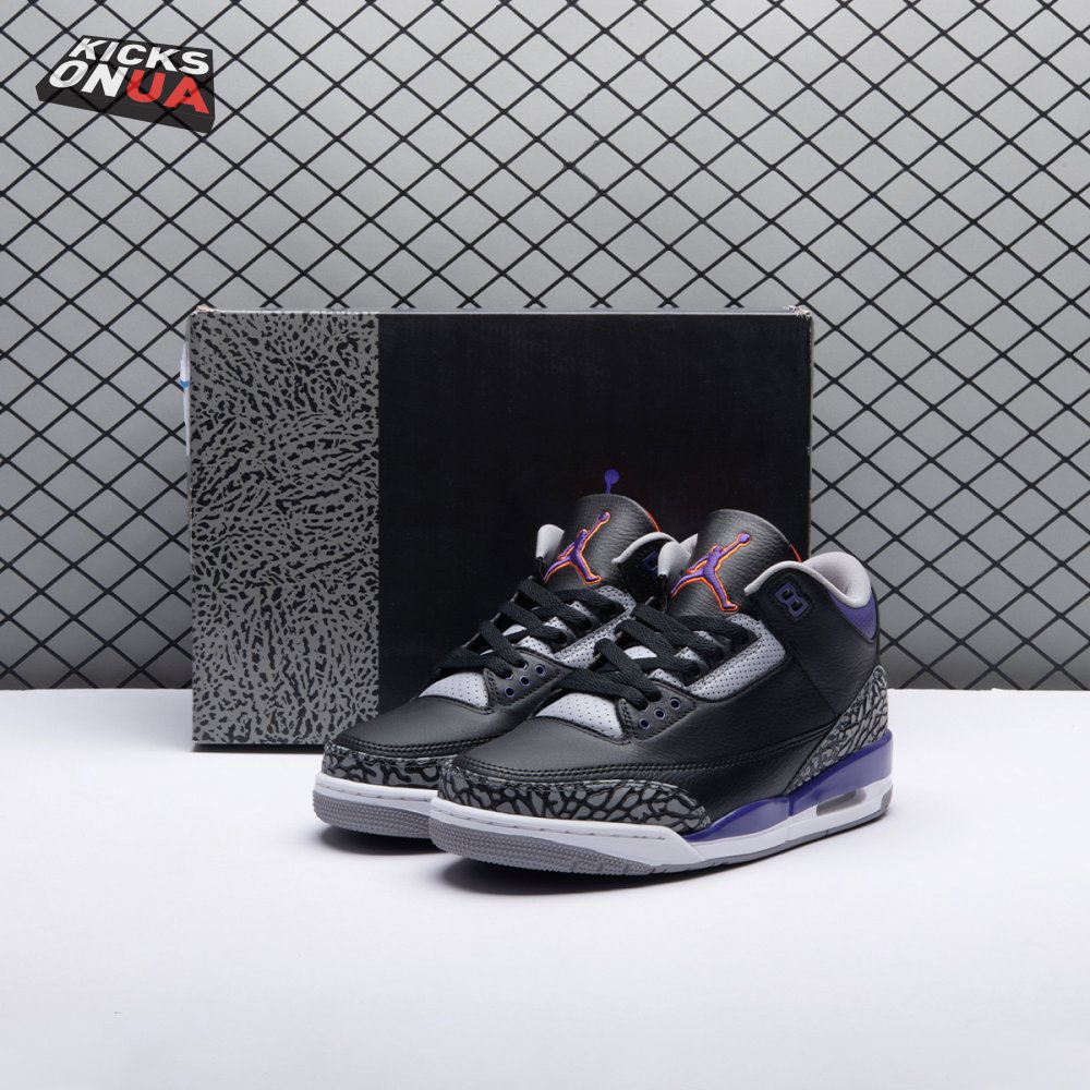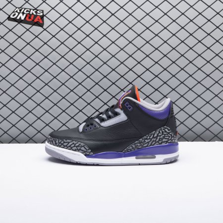 The Air Jordan 3 Retro "Court Purple" makes use of a black tumbled leather upper with signature elephant print overlays at the toe and heel. Violet accents make their way to the padded collar, eyelets and two-tone midsole, featuring visible Air cushioning in the heel. Unexpected pops of vibrant orange stand out on the sneaker"s interior tongue and branding elements, highlighted by a raised Jumpman icon atop the tongue and heel.