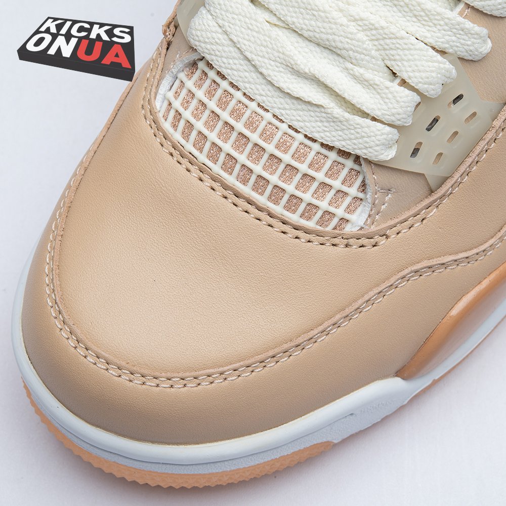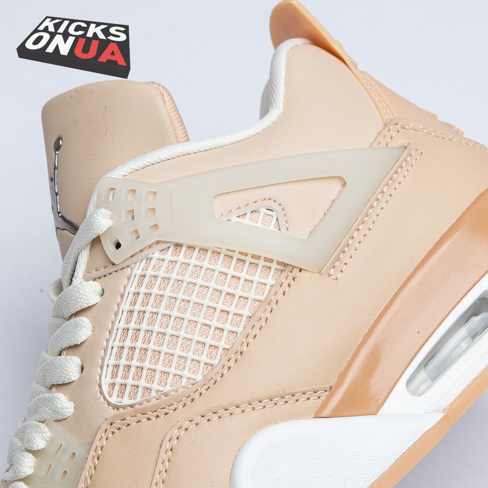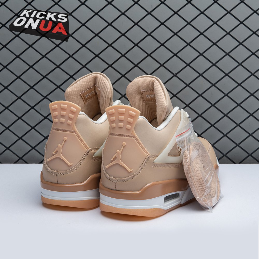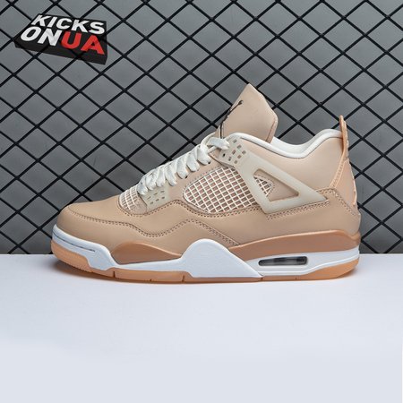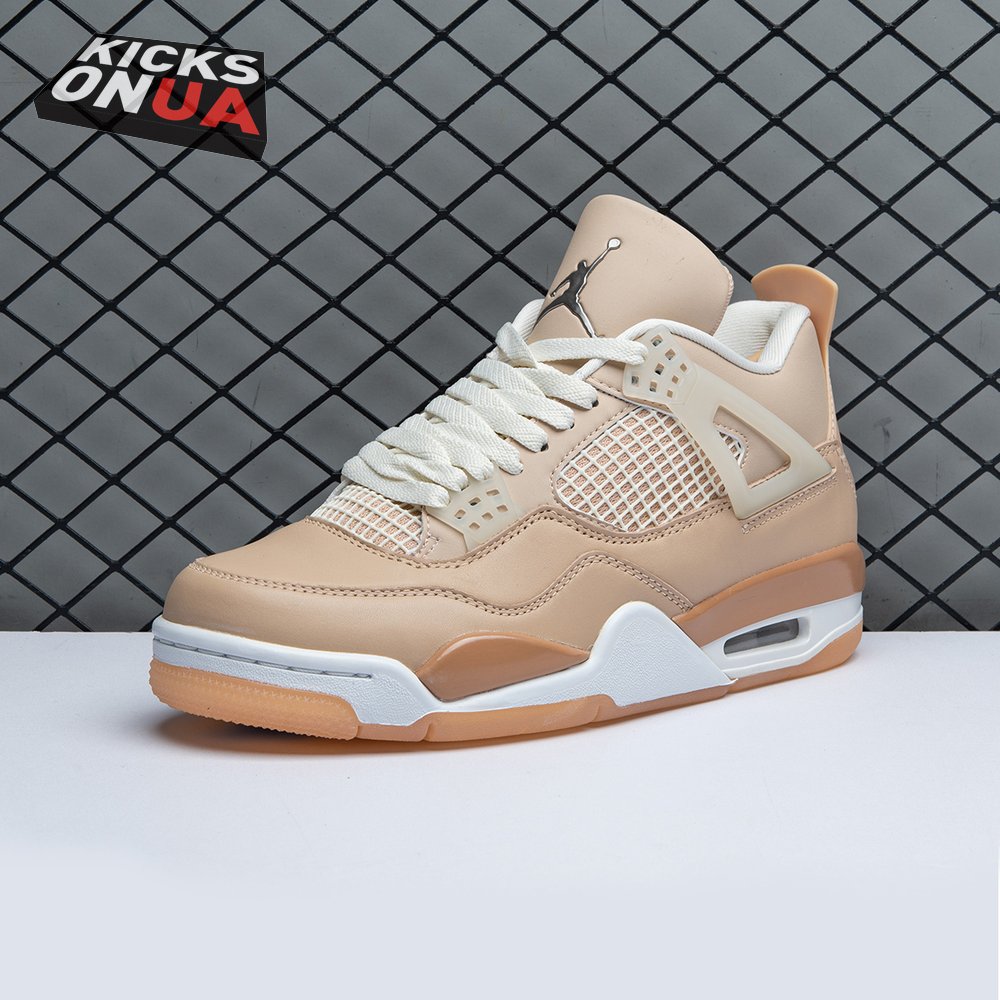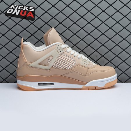 The women"s Air Jordan 4 Retro "Shimmer" offers a subdued take on the classic silhouette forever tied to "The Shot." A monochromatic tan finish suffuses the leather upper, featuring structural wings, molded eyelets and quarter panel netting for enhanced breathability. The neutral color scheme is enlivened by a metallic silver Jumpman atop the tongue. Lightweight cushioning arrives via a polyurethane midsole, fitted with visible Air sole cushioning in the heel and supported by a herringbone-tread outsole.