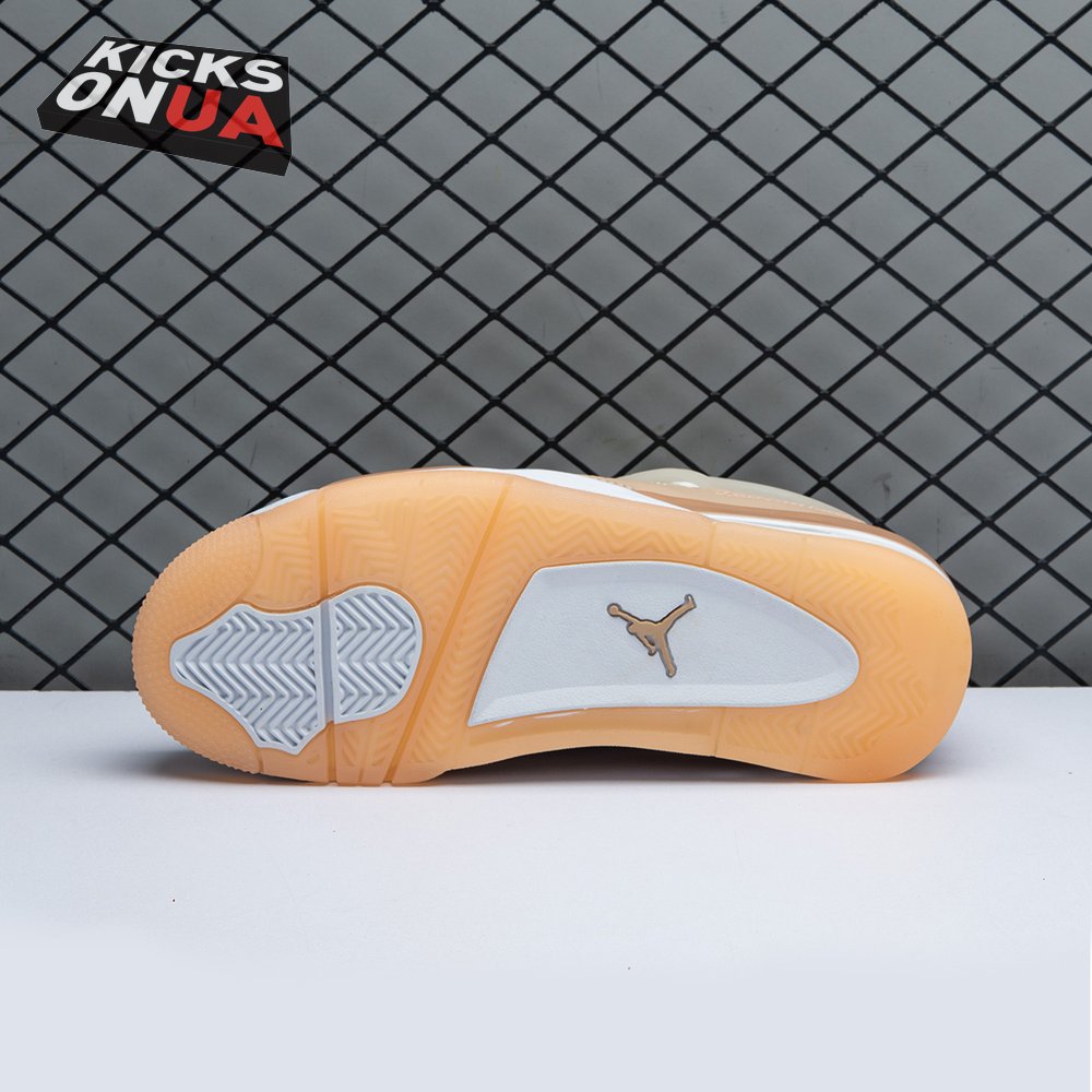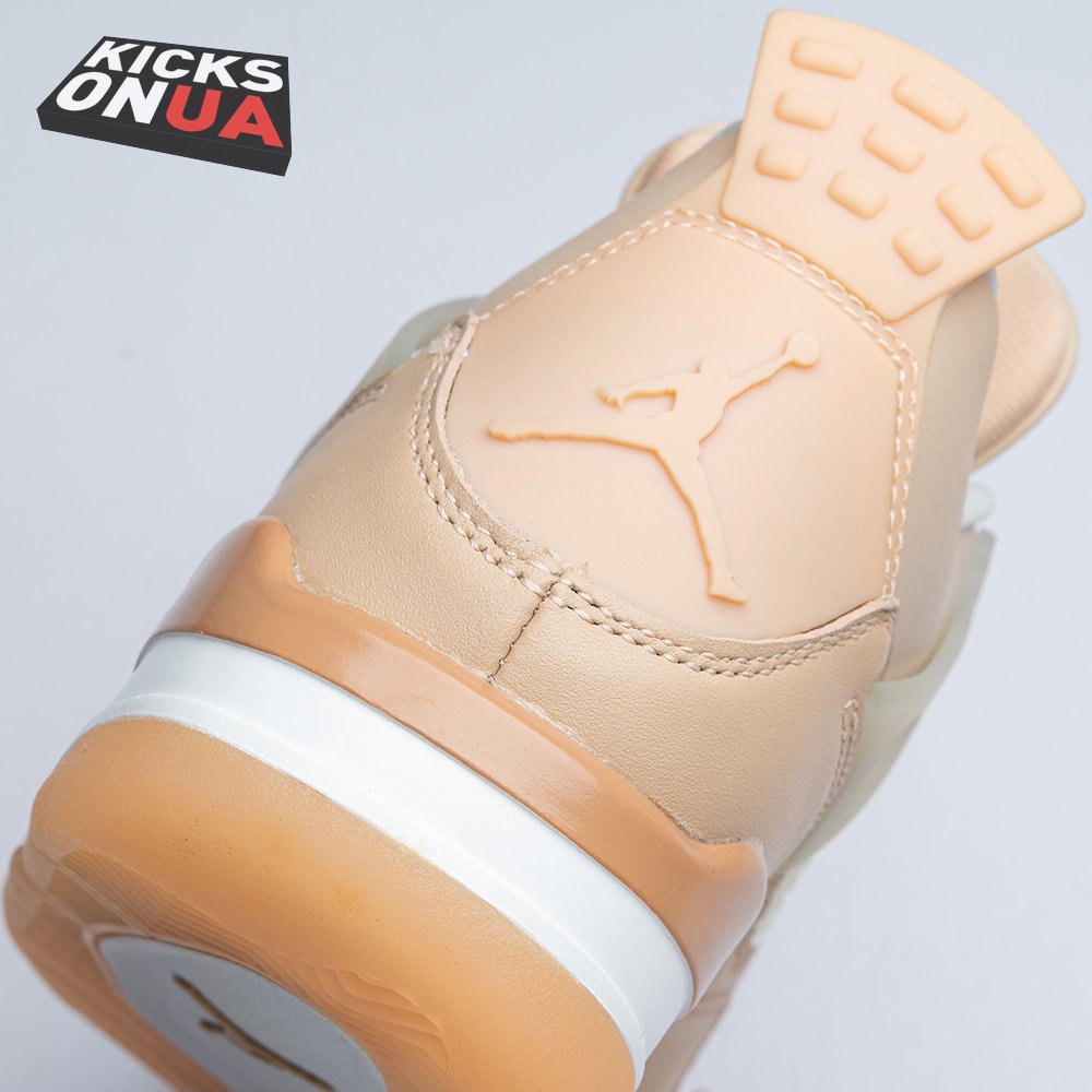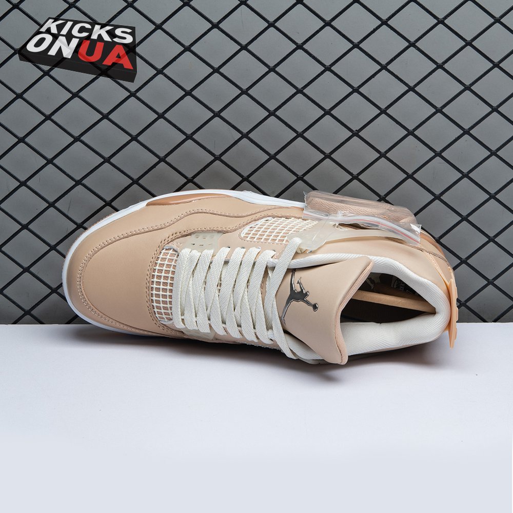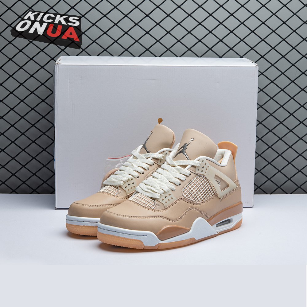 The women"s Air Jordan 4 Retro "Shimmer" offers a subdued take on the classic silhouette forever tied to "The Shot." A monochromatic tan finish suffuses the leather upper, featuring structural wings, molded eyelets and quarter panel netting for enhanced breathability. The neutral color scheme is enlivened by a metallic silver Jumpman atop the tongue. Lightweight cushioning arrives via a polyurethane midsole, fitted with visible Air sole cushioning in the heel and supported by a herringbone-tread outsole.