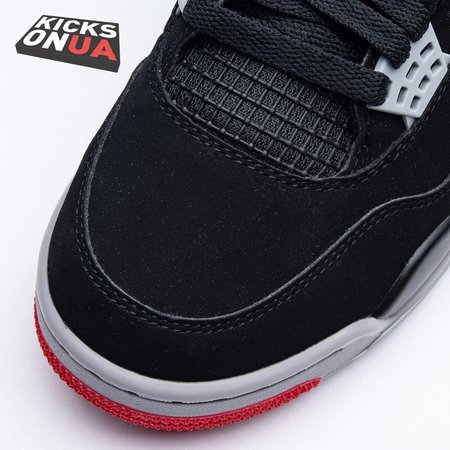 The 2019 edition of the Air Jordan 4 "Bred" celebrates the 30th anniversary of the classic silhouette, appearing in the same colorway that Michael Jordan wore when he sank "The Shot" during the first round of the 1989 NBA playoffs. It"s rendered in a build that"s faithful to the original, complete with a black nubuck upper, visible Air Sole cushioning underfoot and Nike Air branding on the heel.