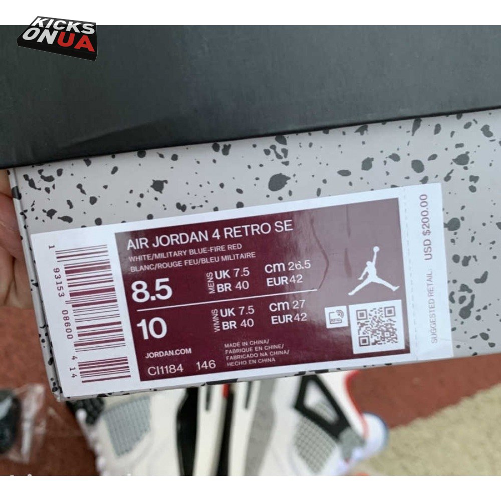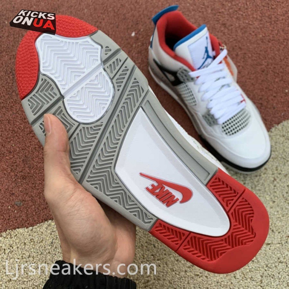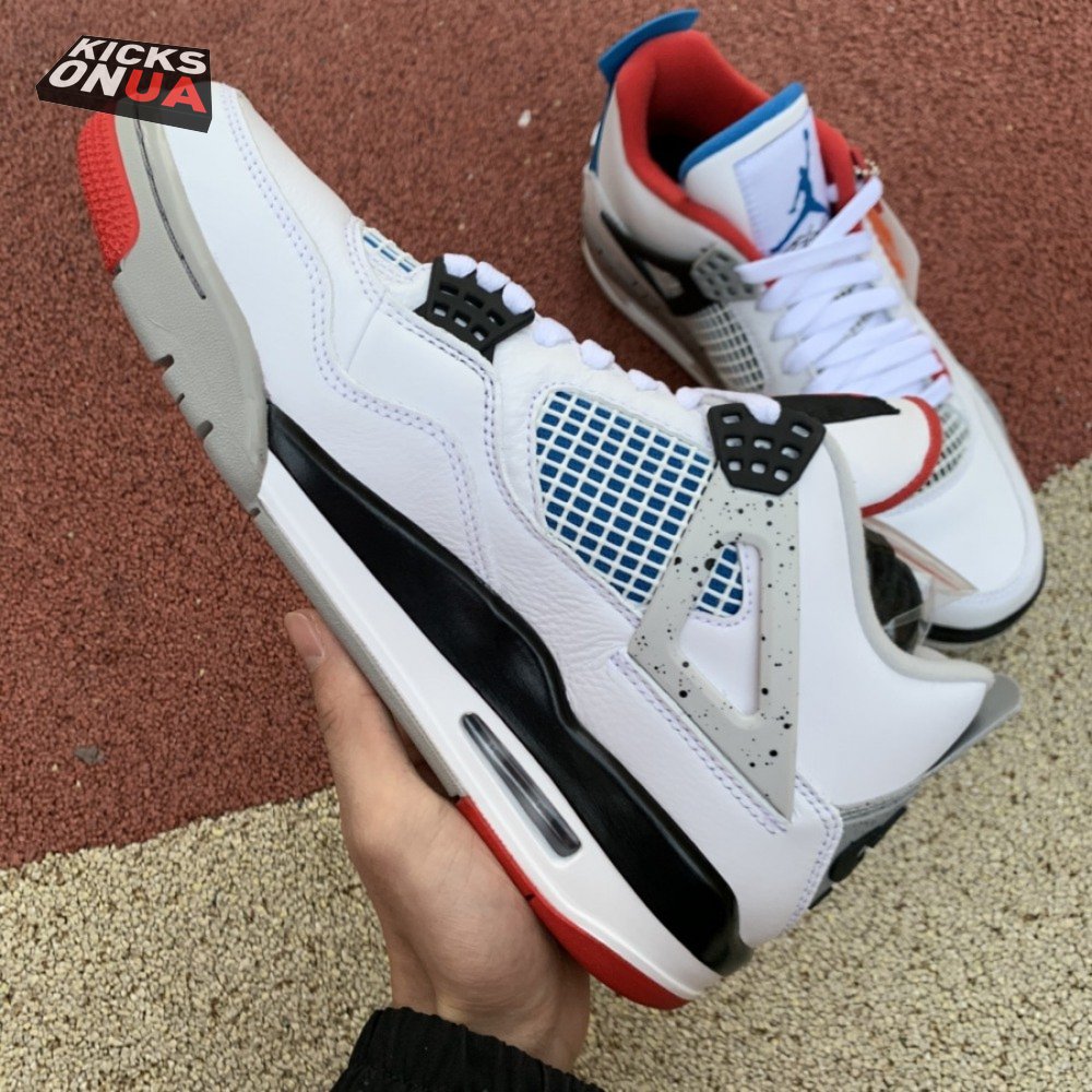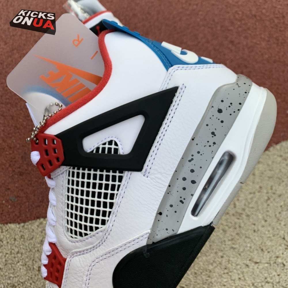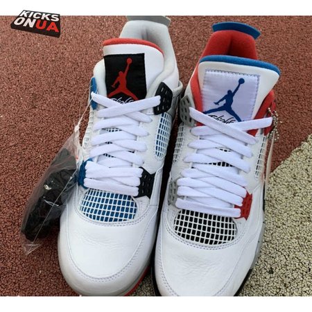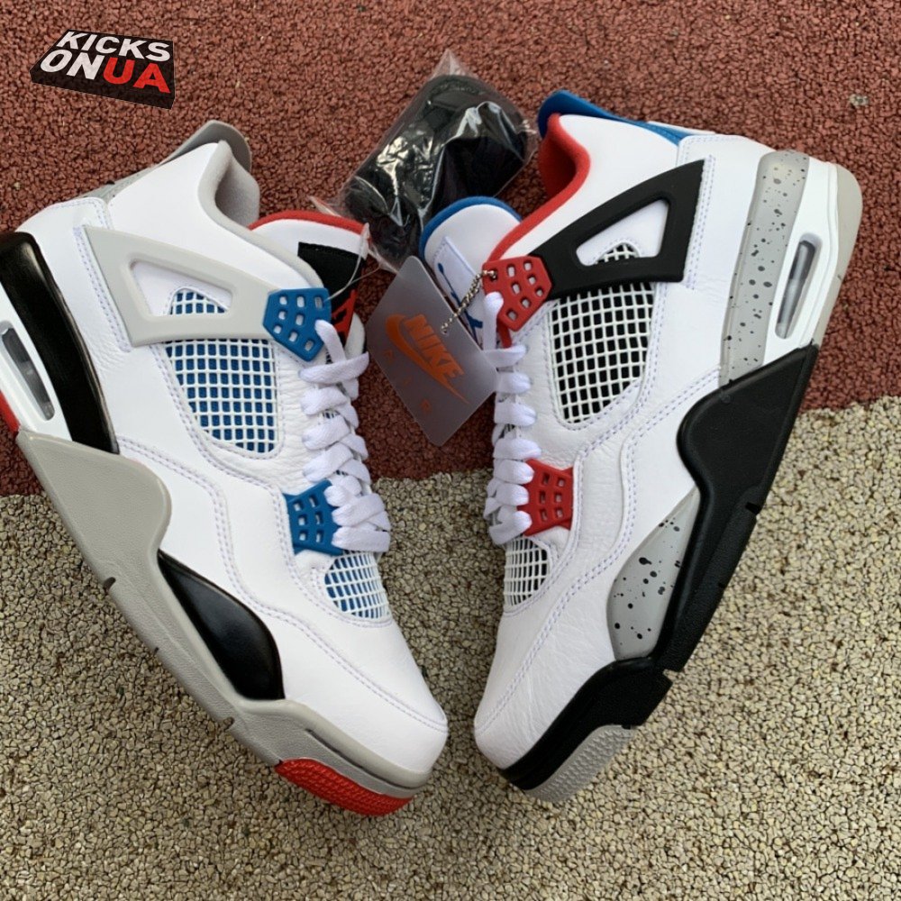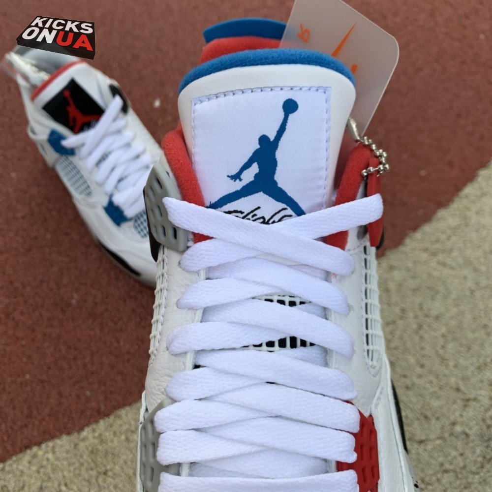 Released in November 2019, the Air Jordan 4 Retro SE 'What The 4' takes the original four colorways of the Air Jordan 4 and combines them in a 'What The' format that has been seen on several Nike silhouettes. This original color palette is realized on the entire shoe, with the beloved Varsity Red, Cement Grey and Military Blue that Jordan 4 fans recognize and love. The discordant aesthetic works across the leather uppers, signature lacing wings and Jumpman logos on the tongue and heel to create something familiar yet new.