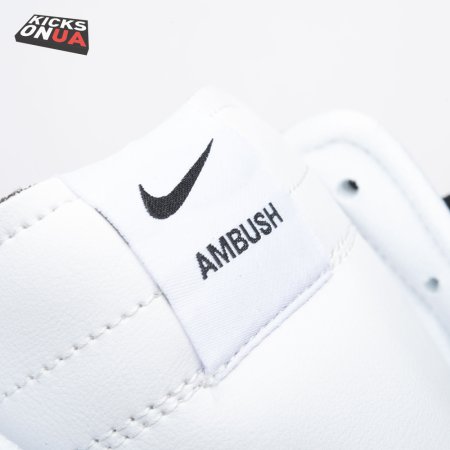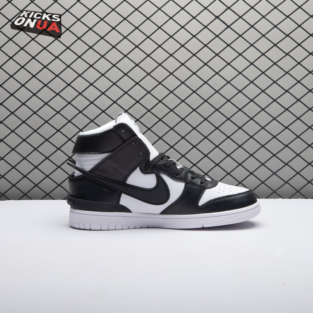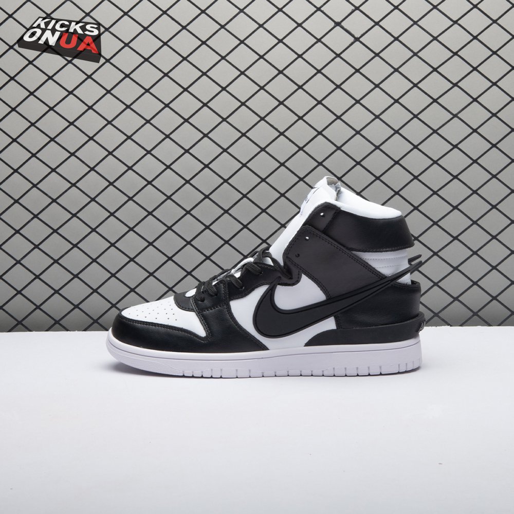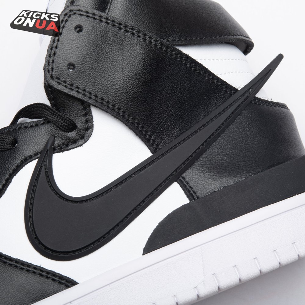 Designed as a joint venture with the Tokyo-based fashion label, the AMBUSH x Nike Dunk High "Black" applies an essential two-tone color scheme to a reconstituted leather build with exaggerated details. The latter is highlighted by an oversized, elongated Swoosh, its pointed tail extending past the back of the shoe to convey a dynamic sense of movement. AMBUSH branding decorates an added TPU heel counter and a woven tag atop the sneaker"s exposed foam tongue.