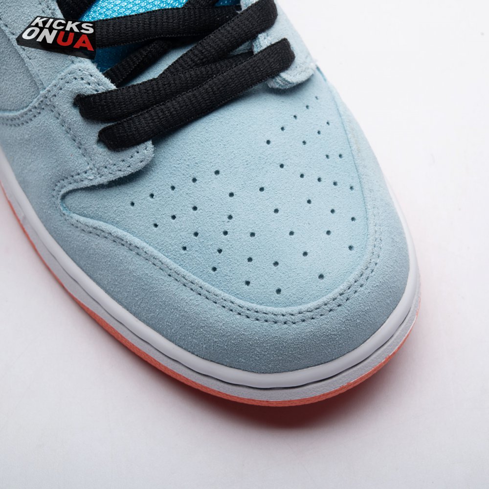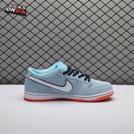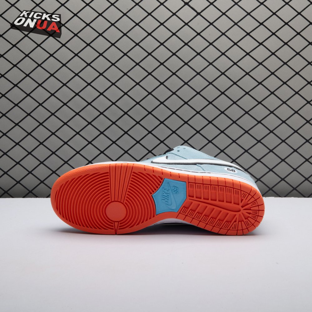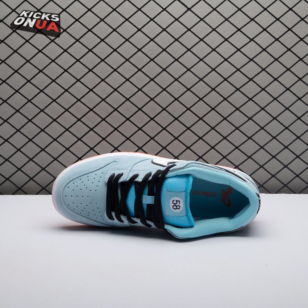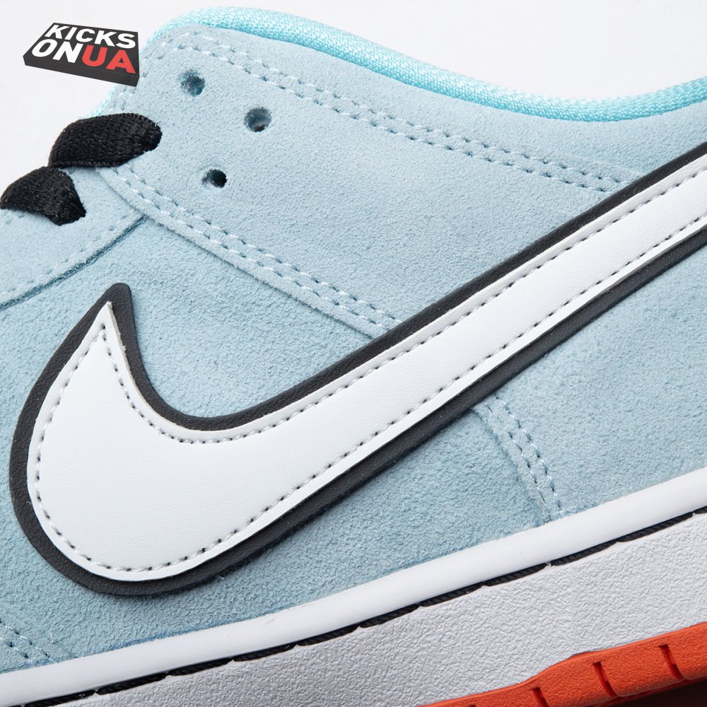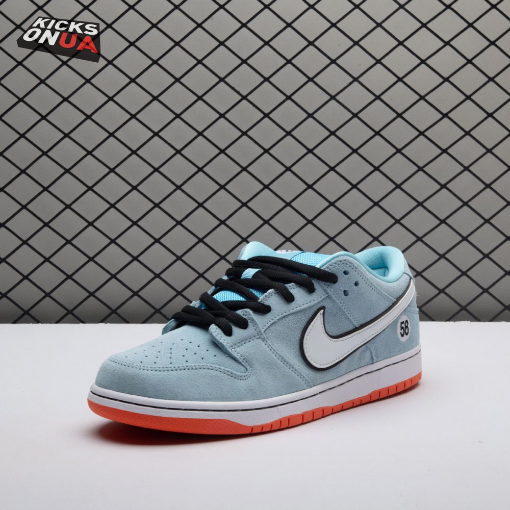The Nike Dunk Low Pro SB 'Gulf" is the follow-up to the Blazer Mid "Club 58" from 2018, both of which are designed in collaboration with a consortium of four prominent skate shops located in Western Europe. Light blue suede is utilized throughout the upper, accented with a white leather Swoosh and a circular 58 graphic on the lateral heel. The digits are repeated on the woven tag affixed to the stuffed mesh tongue. Underfoot, a bright orange rubber outsole delivers a contrasting pop of color.