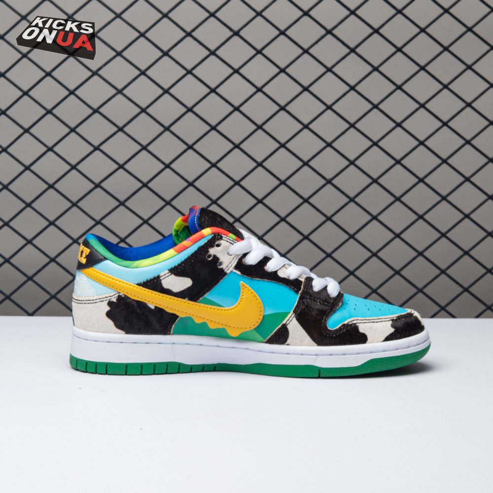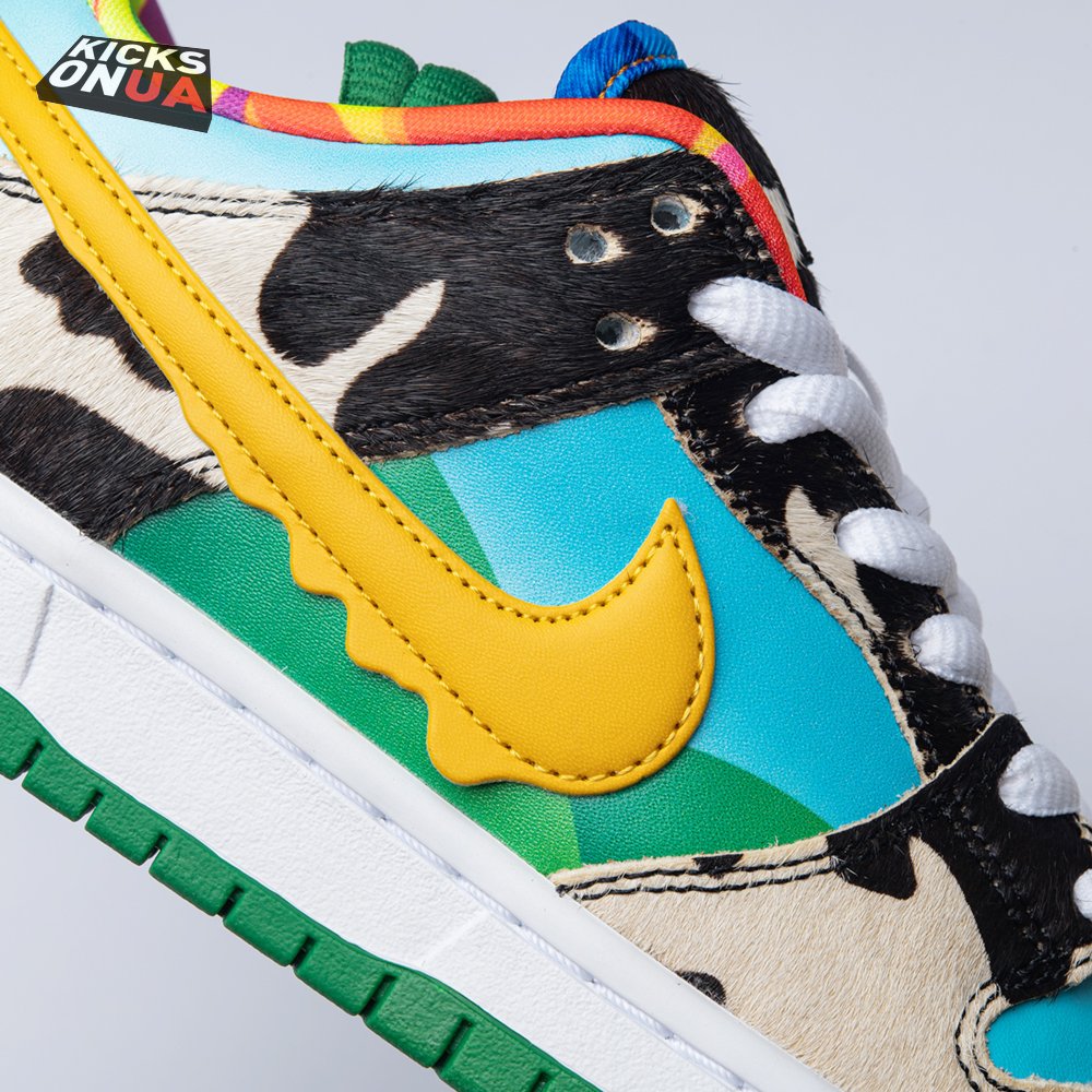 Made in collaboration with Ben & Jerry"s, the Nike Dunk Low SB "Chunky Dunky" replicates the packaging used for the ice cream brand"s Chunky Monkey flavor. The leather upper depicts blue skies and green pastures, while pony-hair overlays are rendered in a spotted cow print. A yellow leather Swoosh is treated to a melting ice cream effect for added visual flair. Atop the tongue, the woven tag features a Chunky Dunky callout alongside Nike SB branding.
