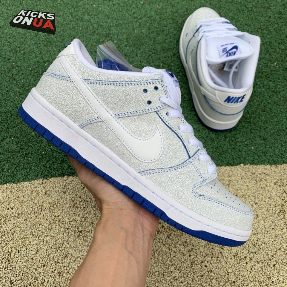 Nike Skateboarding released a fresh version of the Dunk Low in July 2019. The Nike SB Dunk Low Premium 'Cracked Leather" features a low top silhouette constructed from a premium cracked leather with smooth leather on the Swoosh branding. A padded tongue and Zoom Air unit in the sockliner help provide comfort and support. Underneath, a white midsole sits atop a Game Royal rubber outsole with a pivot point tread pattern.