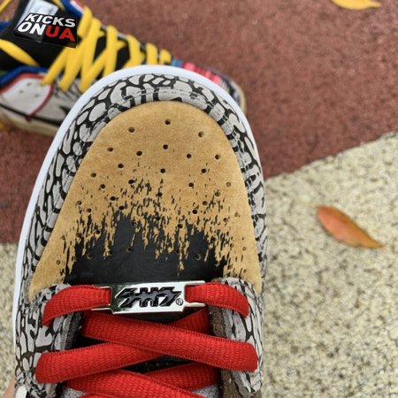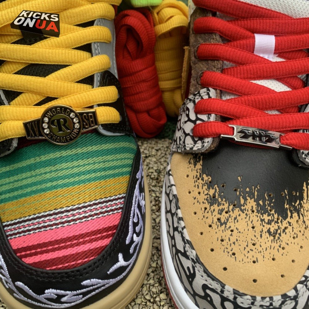 The Nike Dunk Low SB "What The Paul" celebrates the Swoosh"s longstanding partnership with Paul Rodriguez Jr., the first skateboarder to land his own signature Nike shoe. Each of the mismatched shoes is a greatest-hits medley featuring distinctive colors, textures and materials culled from P-Rod"s signature line. Multiple details are drawn from various colorways of the P-Rod 1, including the J-Rod"s elephant print overlays and toe boxes that reference the "Mexican Blanket" and "Stash" editions. Additional highlights include the P-Rod 2"s quilted lining and a metallic lace jewel taken from the athlete"s Mexico-themed SB Dunk High from 2020.