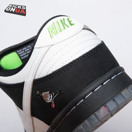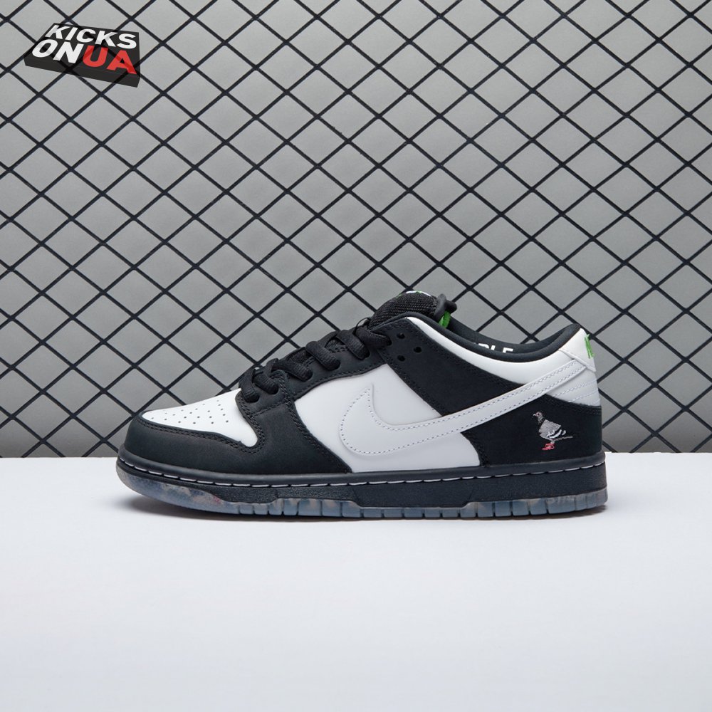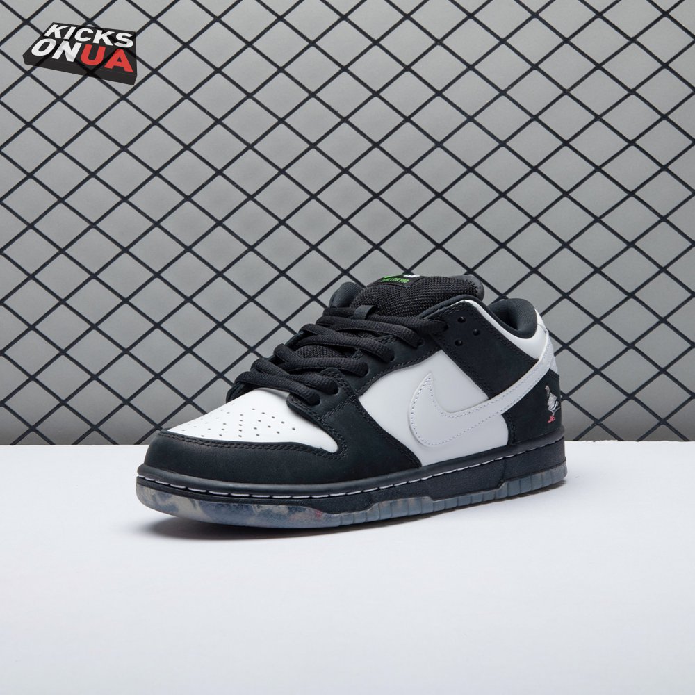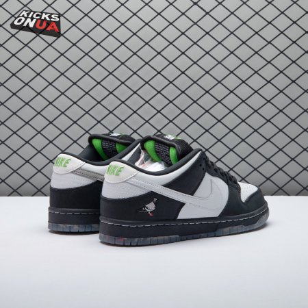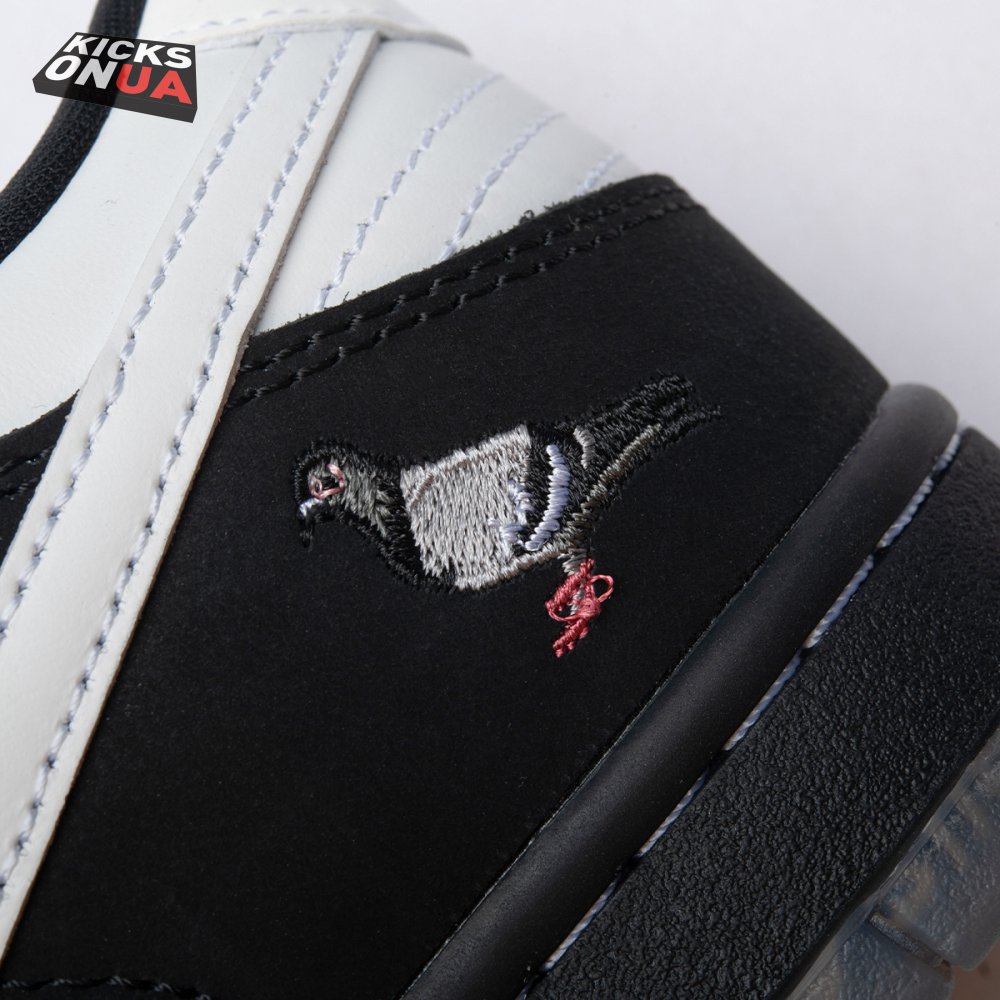 Originally conceived as a sample colorway that was initially rejected, the Jeff Staple x Dunk Low Pro SB "Panda Pigeon" continues Staple"s long-running partnership with Nike SB. The design lives up to its name with a black and white color scheme on the leather and suede upper, complete with the all-important pigeon on the lateral heel. A translucent outsole reveals a collage made up of newspaper headlines alluding to the infamous Pigeon Dunk launch from 2005.