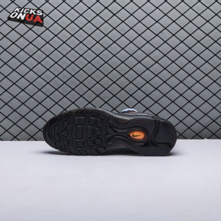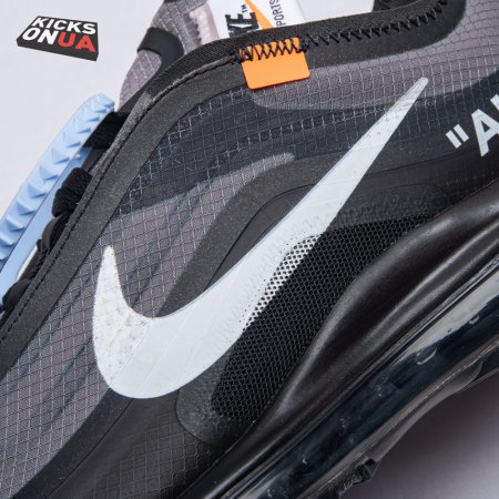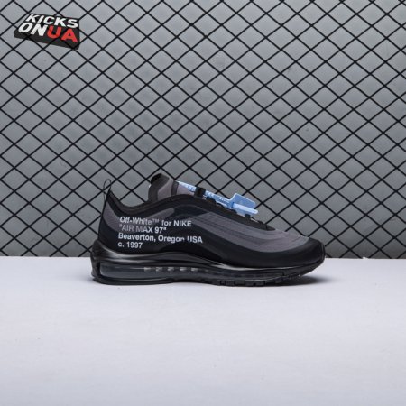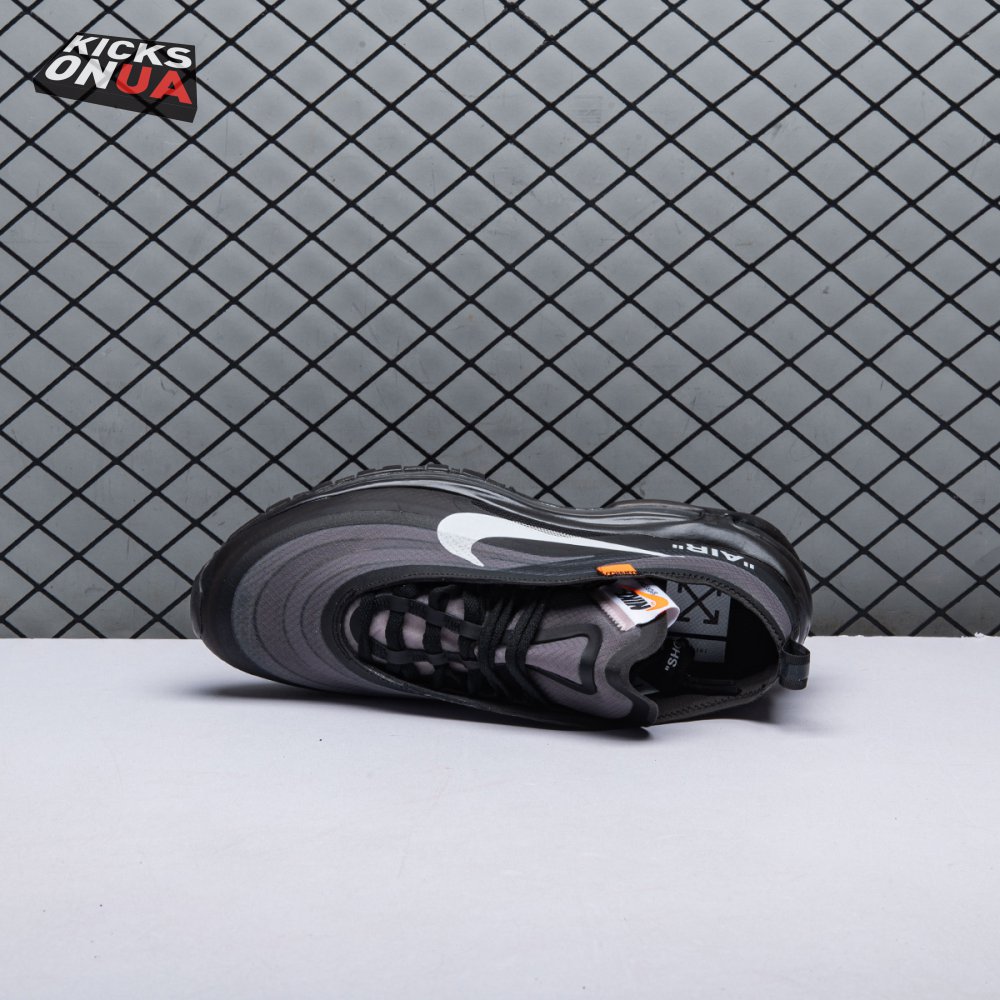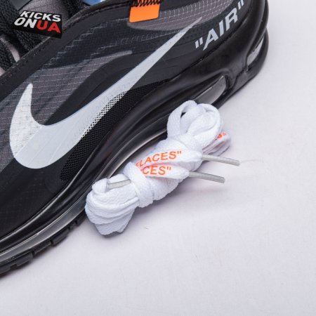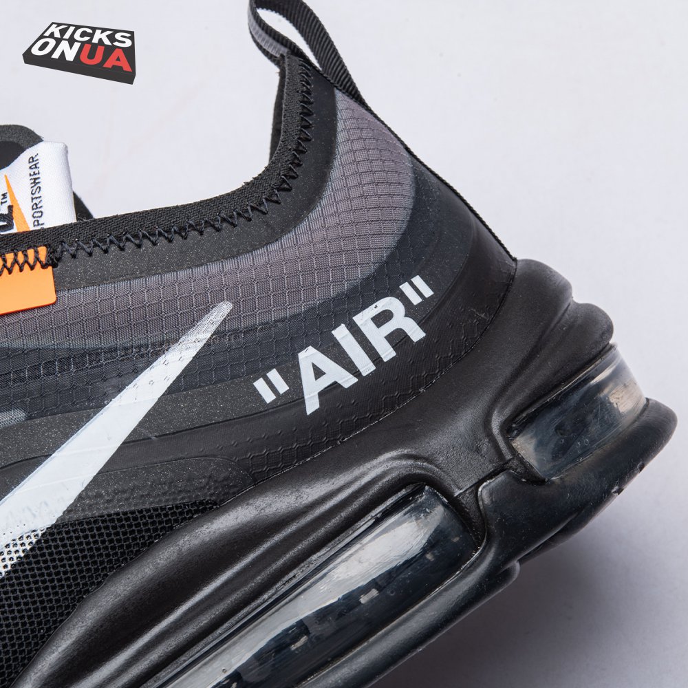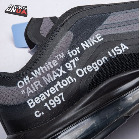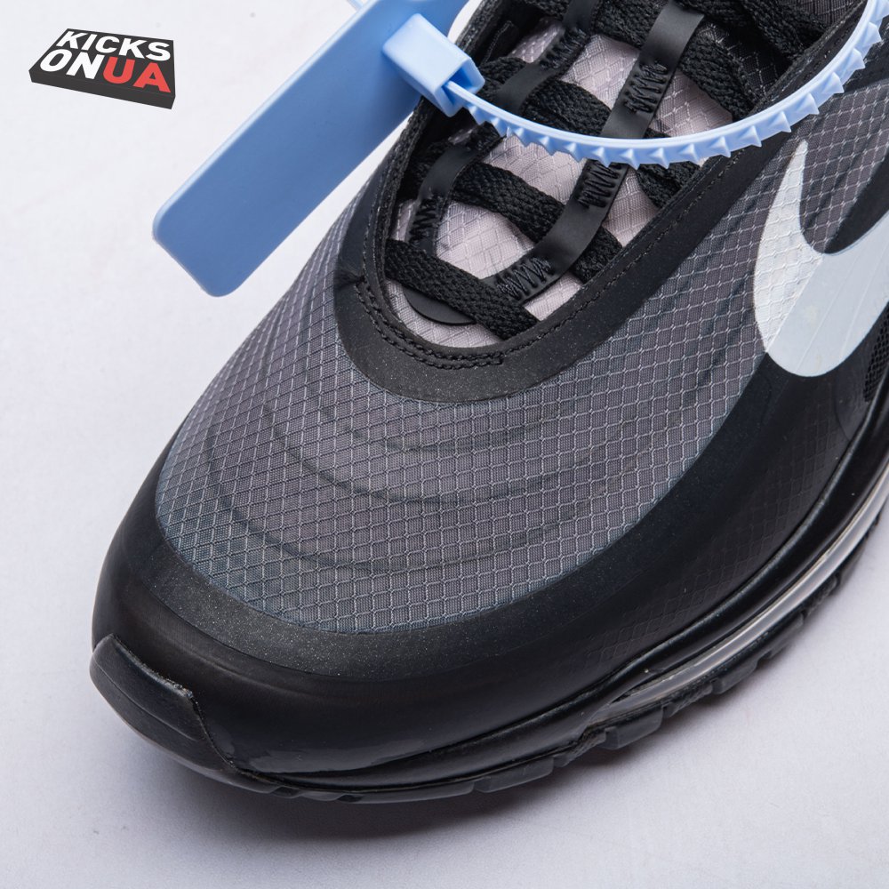 Debuting on the runway at Paris Fashion Week in June 2018, the Off-White x Air Max 97 in black sees Virgil Abloh outfit the retro runner with a translucent textile upper. A white Swoosh and "AIR" lettering adorn the lateral side, while the quarter panel on the medial side is printed with more lines of Virgil"s signature text. The shoe"s reconstructed look is finished with a woven Nike tongue tag pushed to the side.