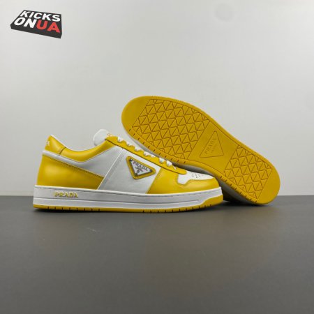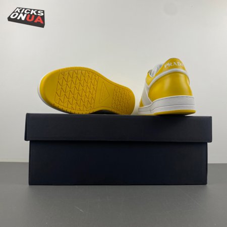 Prada Downtown Low Top Sneakers Leather White Yellow Sun