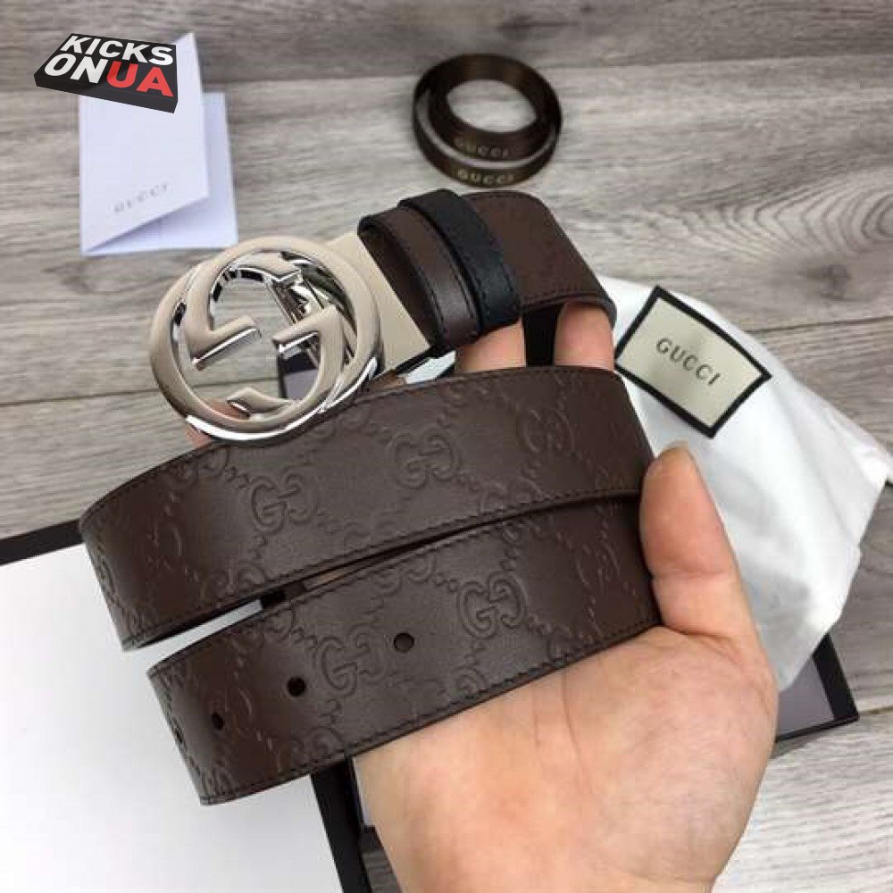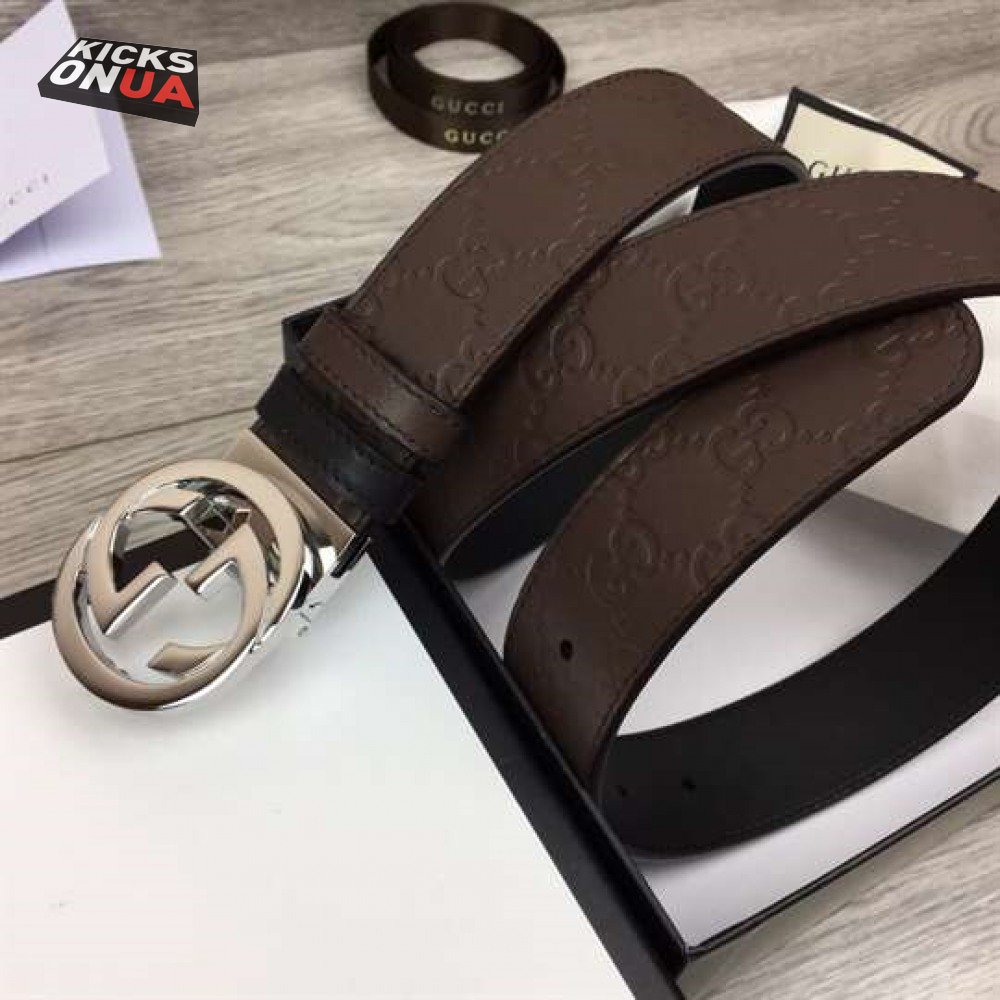 GUCCI BROWN GUCCISSIMA LEATHER INTERLOCKING GG BUCKLE BELT - B38