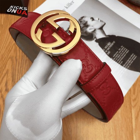 GUCCI INTERLOCKING G-BUCKLE LEATHER BELT - B3