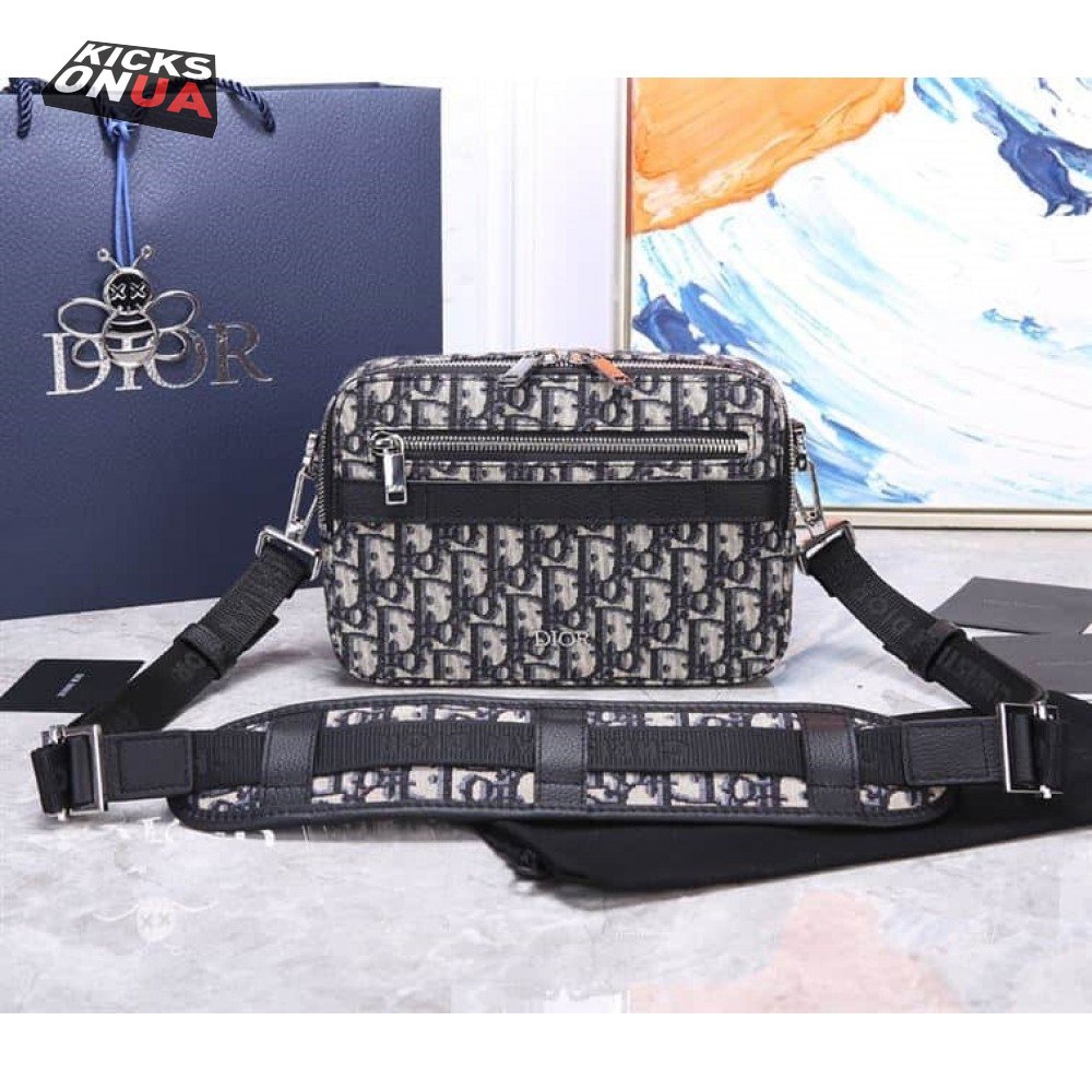SAFARI MESSENGER BAG BEIGE AND BLACK DIOR OBLIQUE JACQUARD